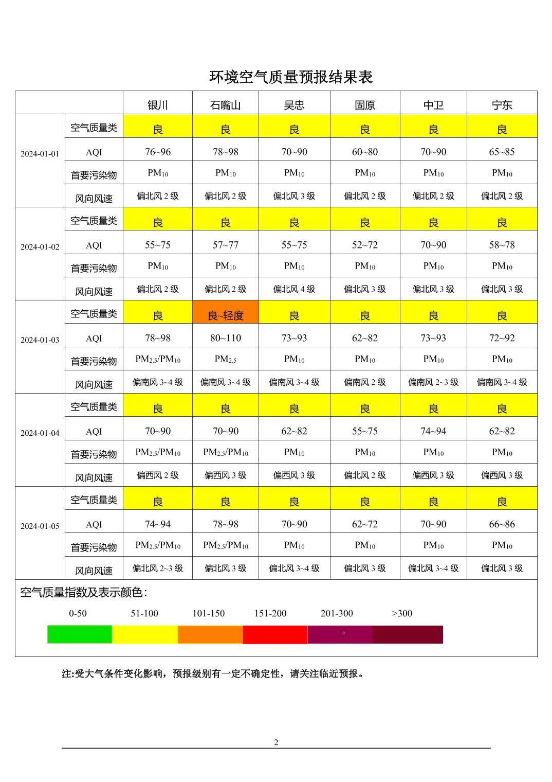 > 环境空气质量预报