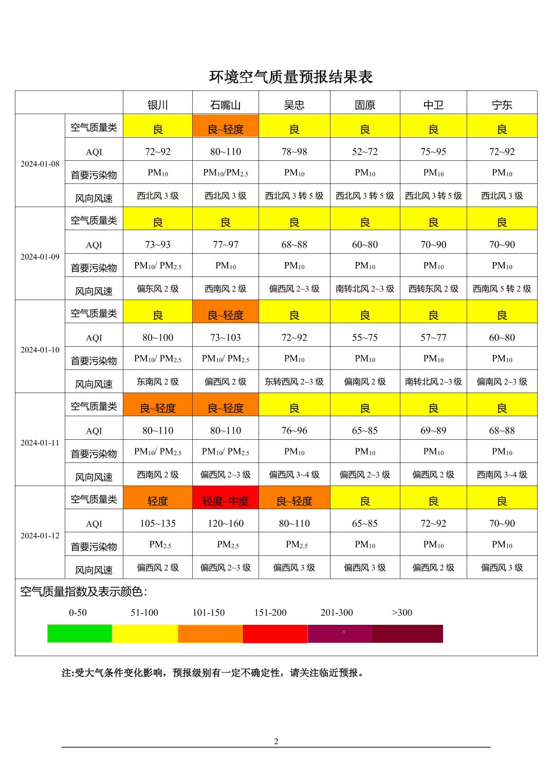 > 环境空气质量预报