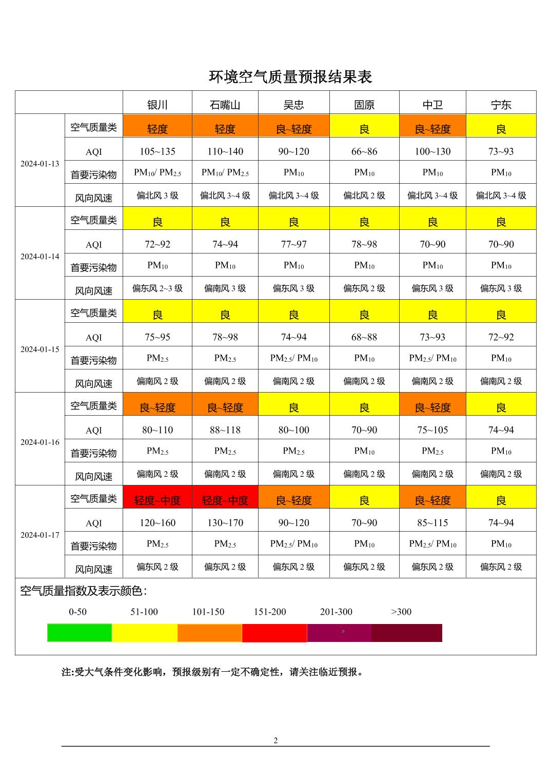 > 环境空气质量预报