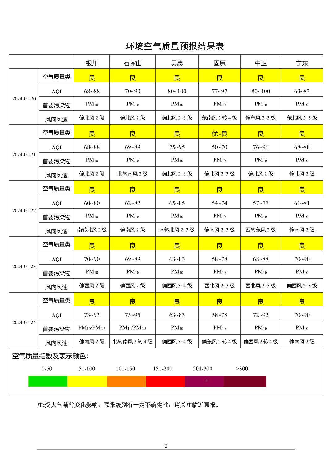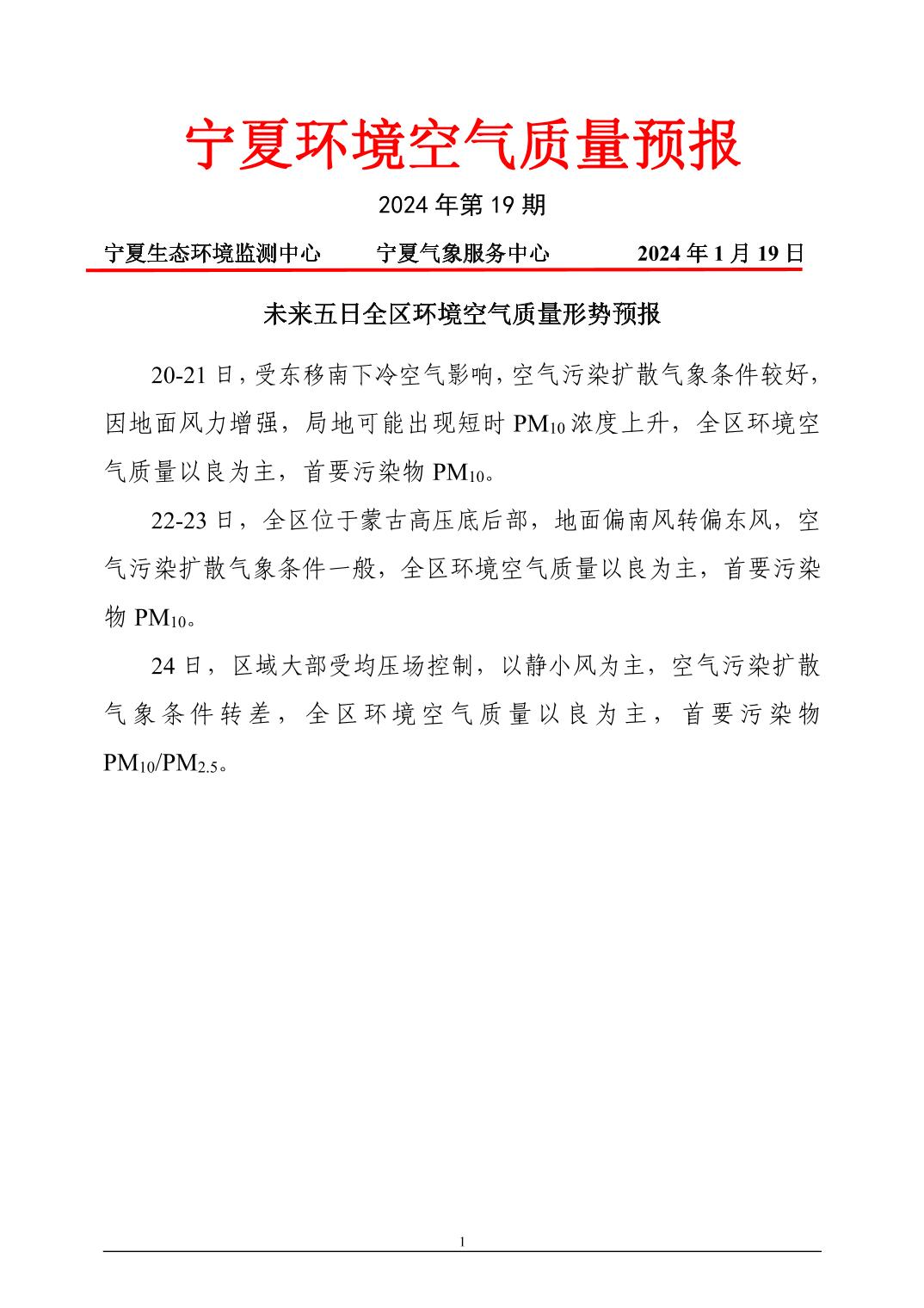 2024年1月19日宁夏环境空气质量预报信息