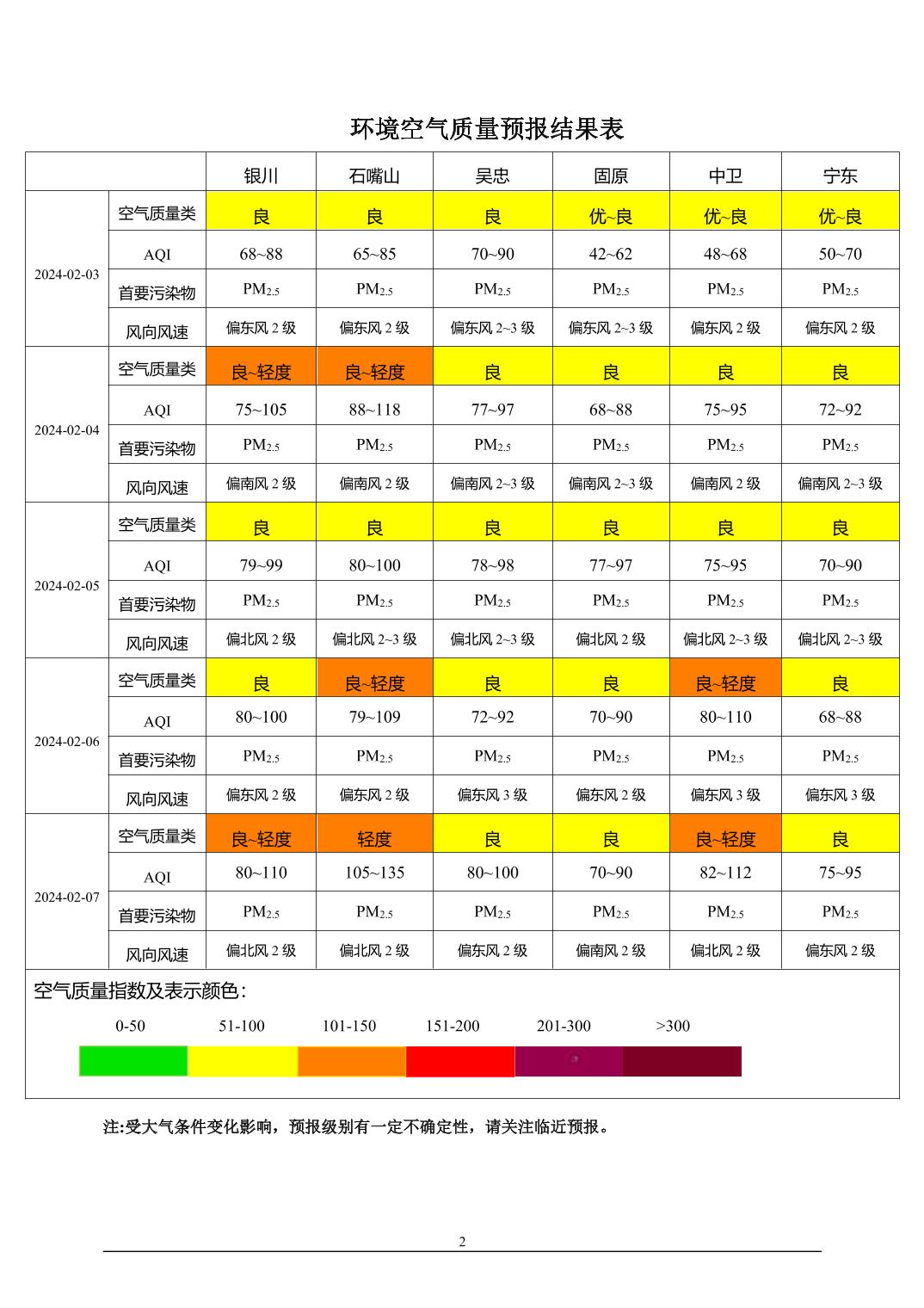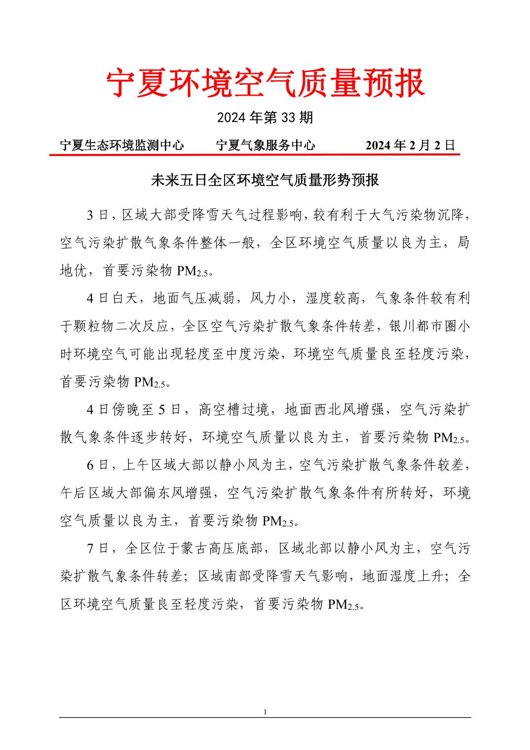 2024年2月2日宁夏环境空气质量预报信息