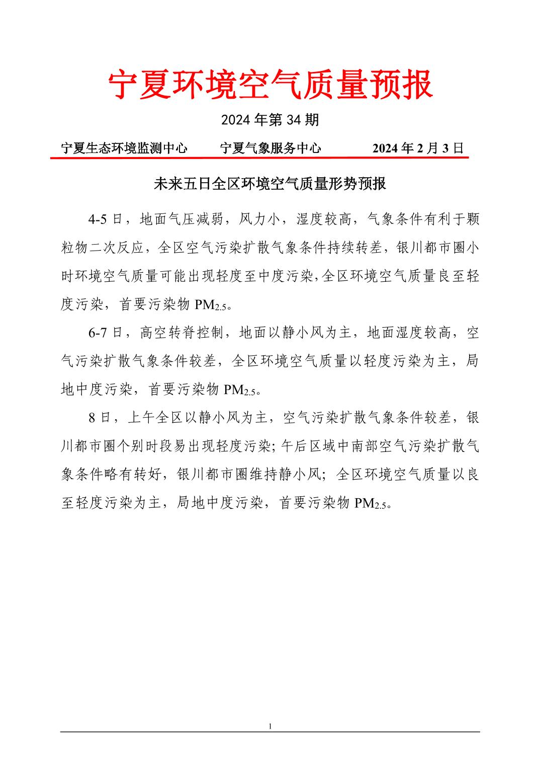 2024年2月3日宁夏环境空气质量预报信息