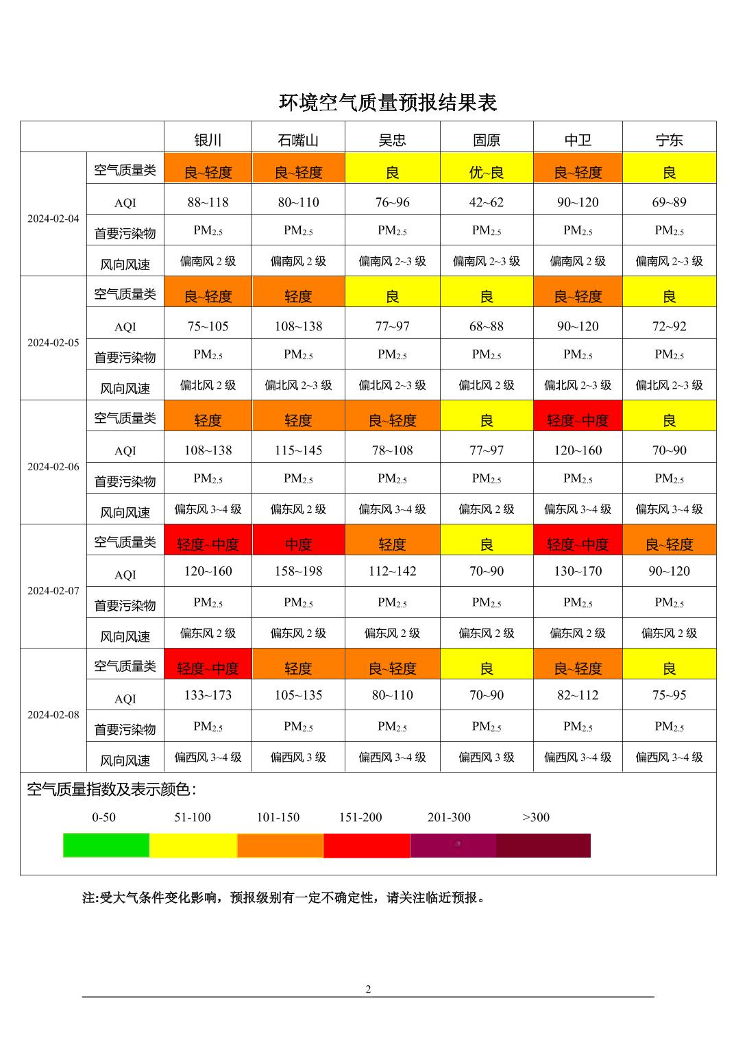 > 环境空气质量预报