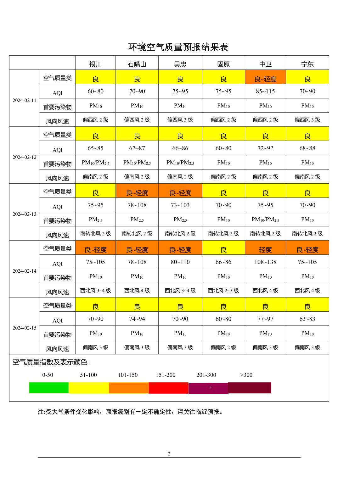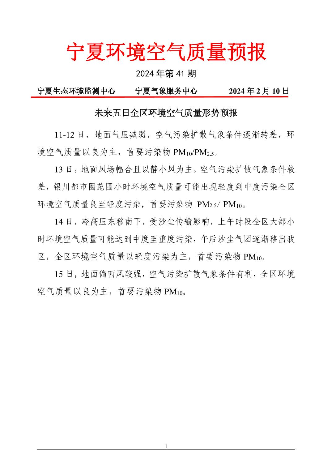 2024年2月10日宁夏环境空气质量预报信息
