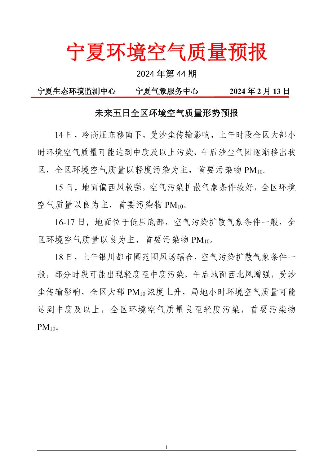 2024年2月13日宁夏环境空气质量预报信息