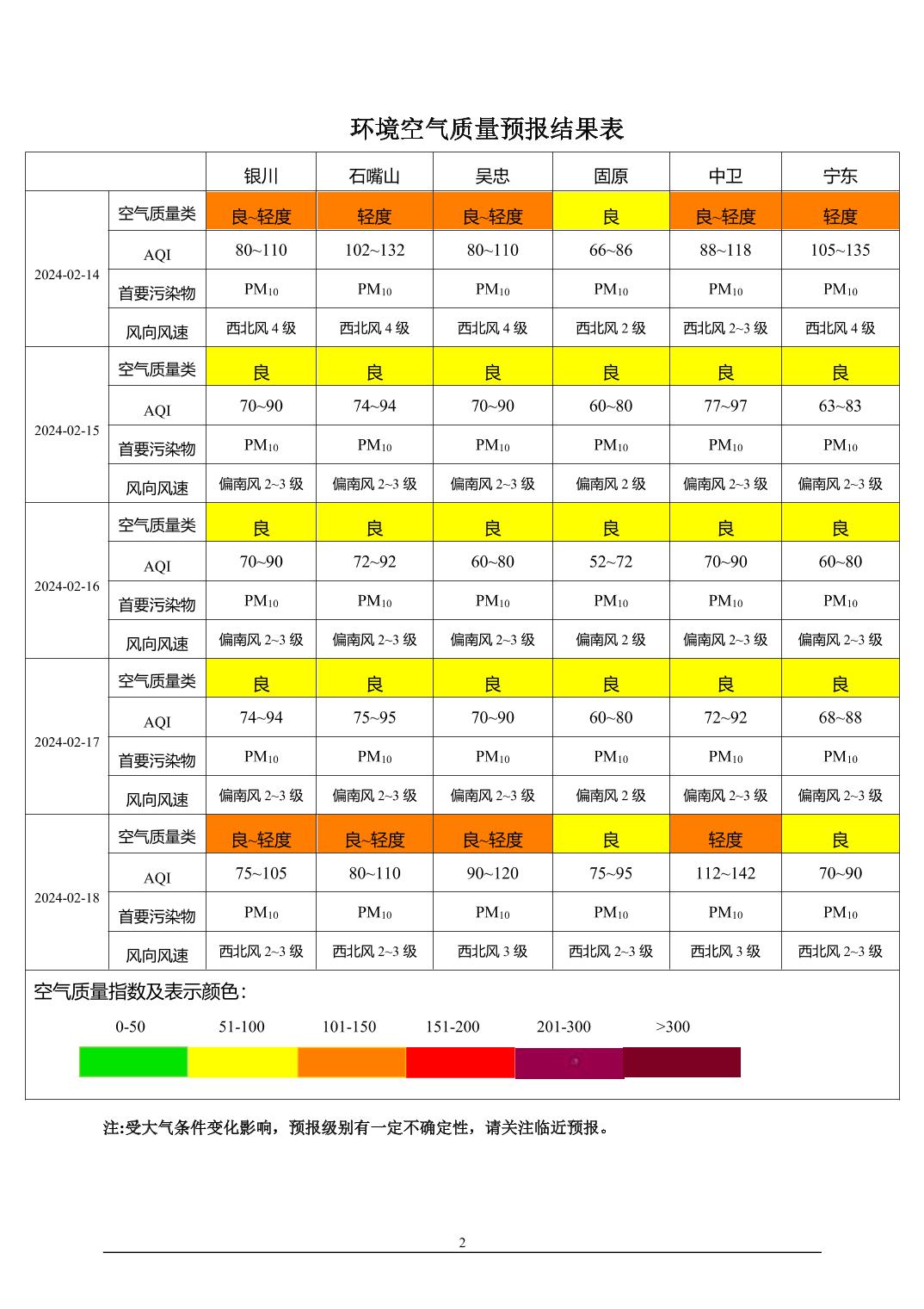 > 环境空气质量预报