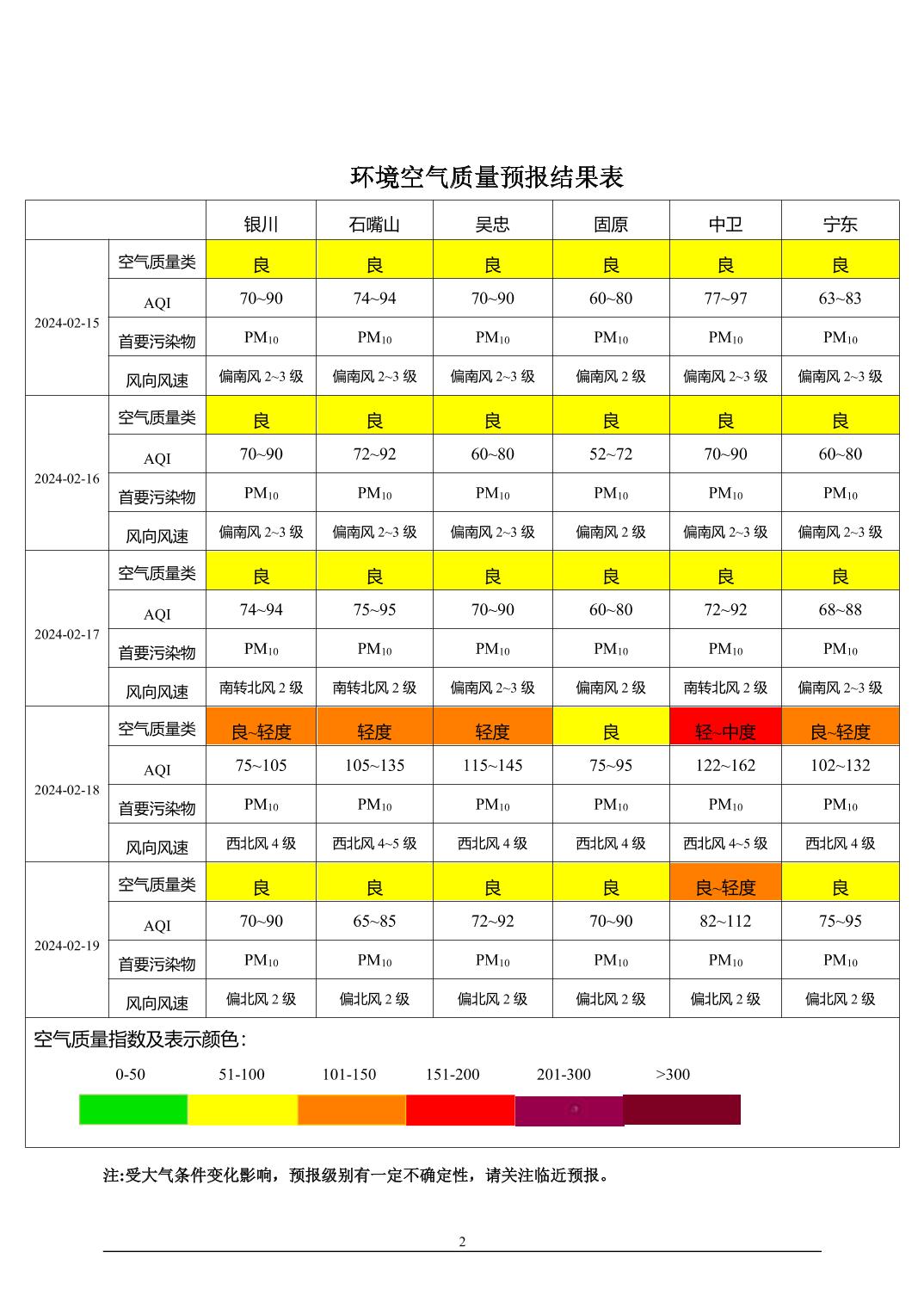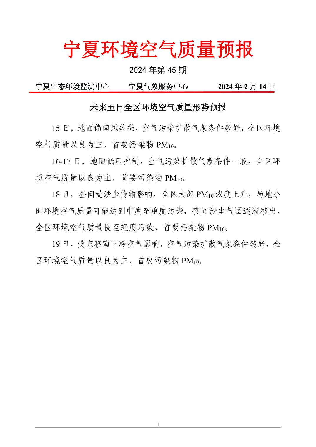 2024年2月14日宁夏环境空气质量预报信息