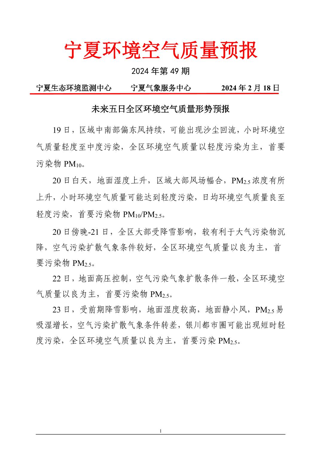 2024年2月18日宁夏环境空气质量预报信息