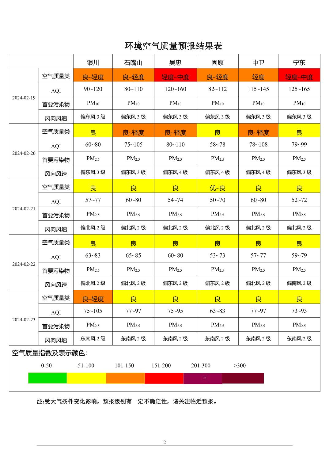 > 环境空气质量预报