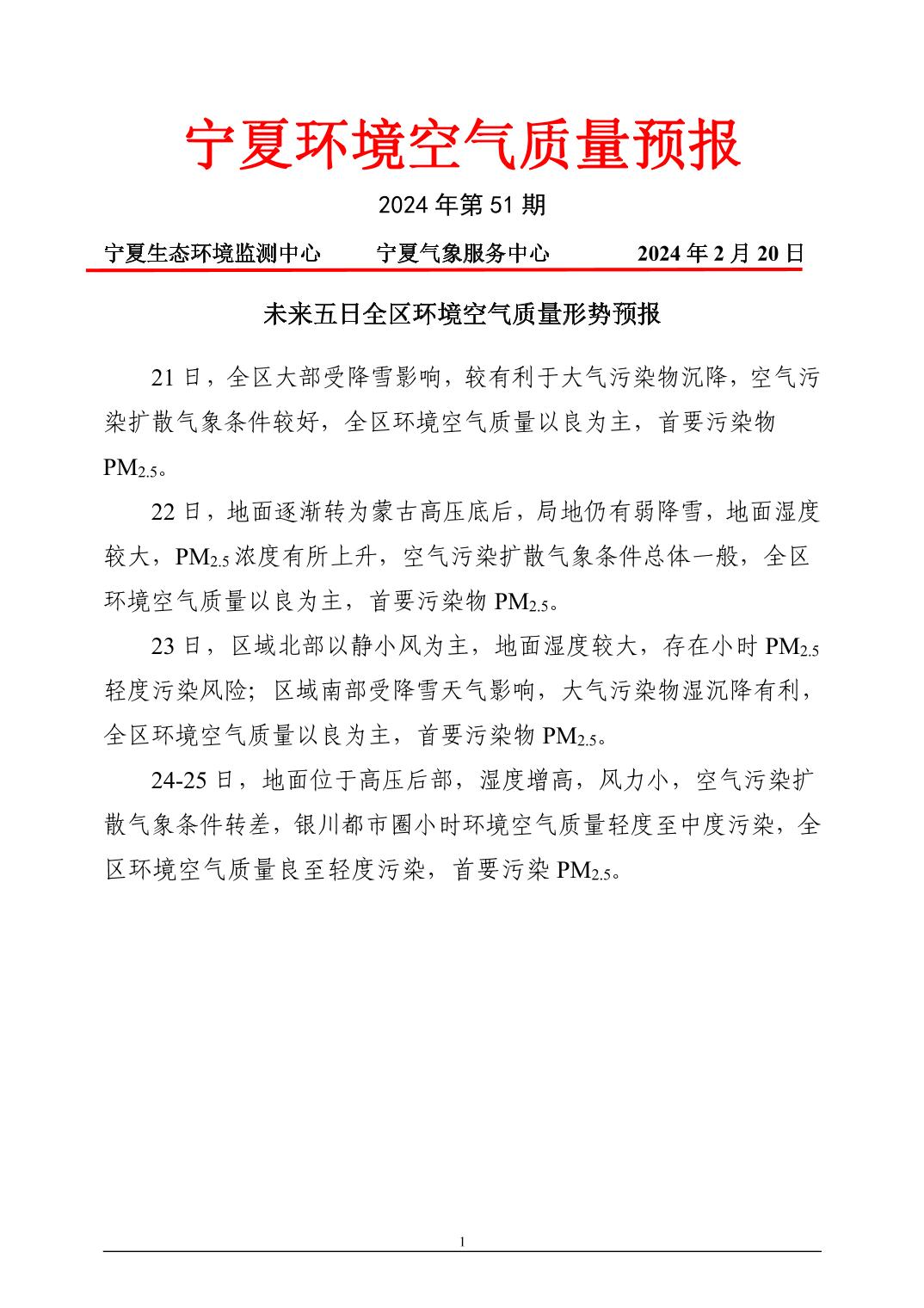 2024年2月20日宁夏环境空气质量预报信息