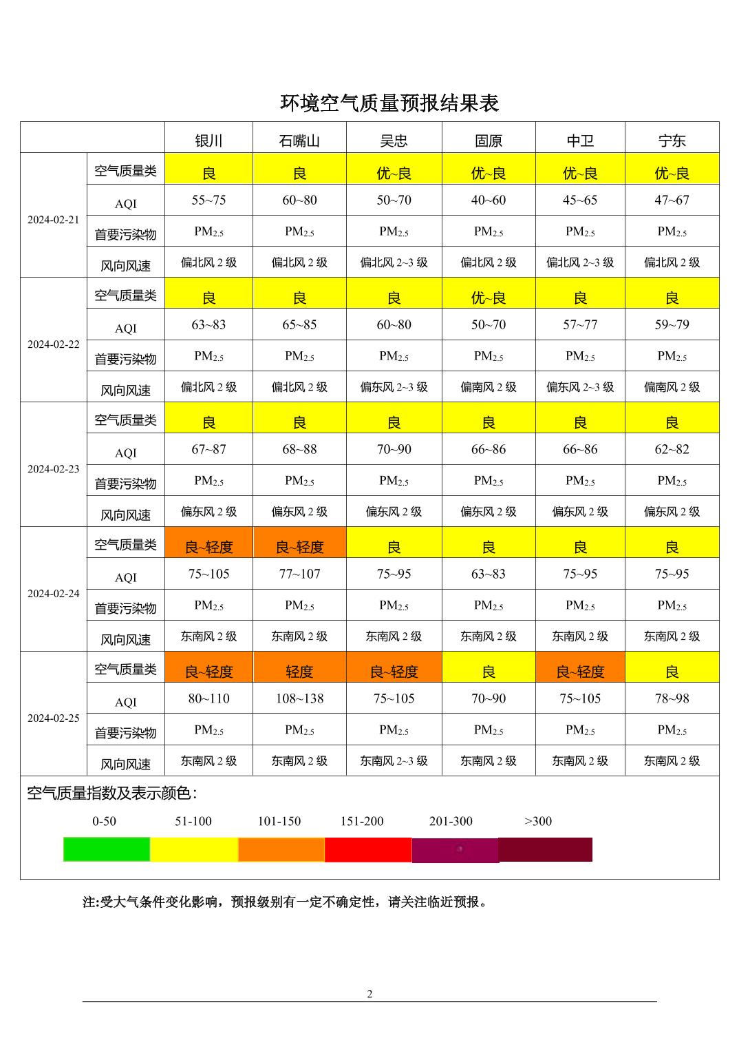 > 环境空气质量预报