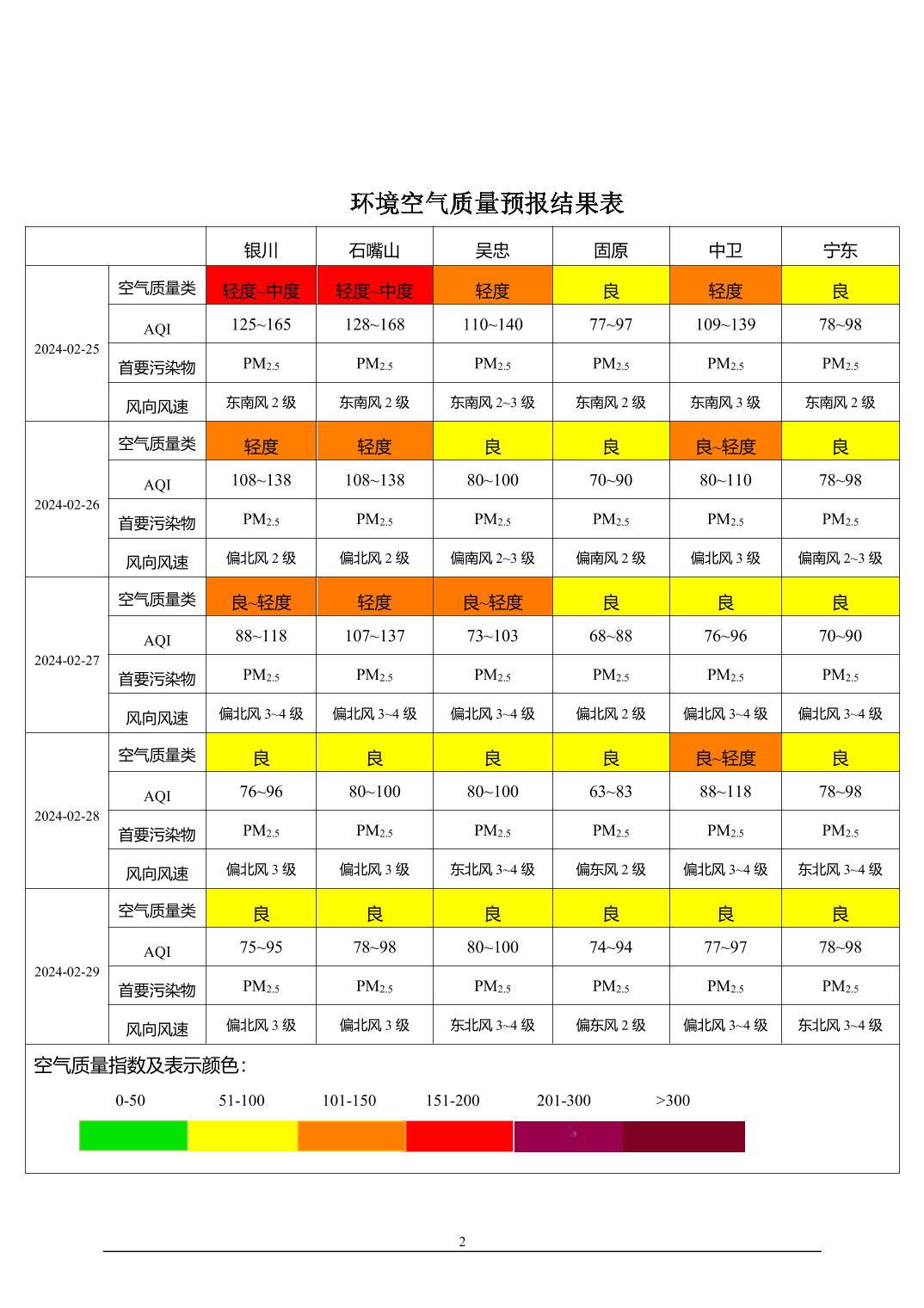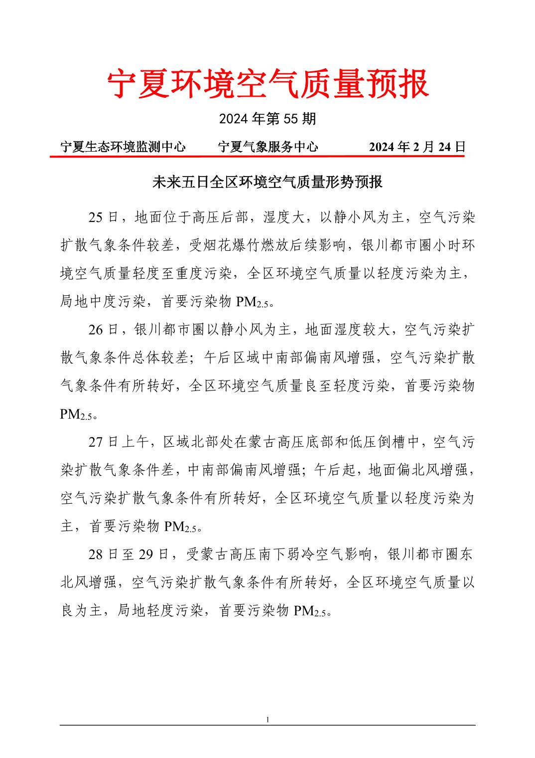 2024年2月24日宁夏环境空气质量预报信息