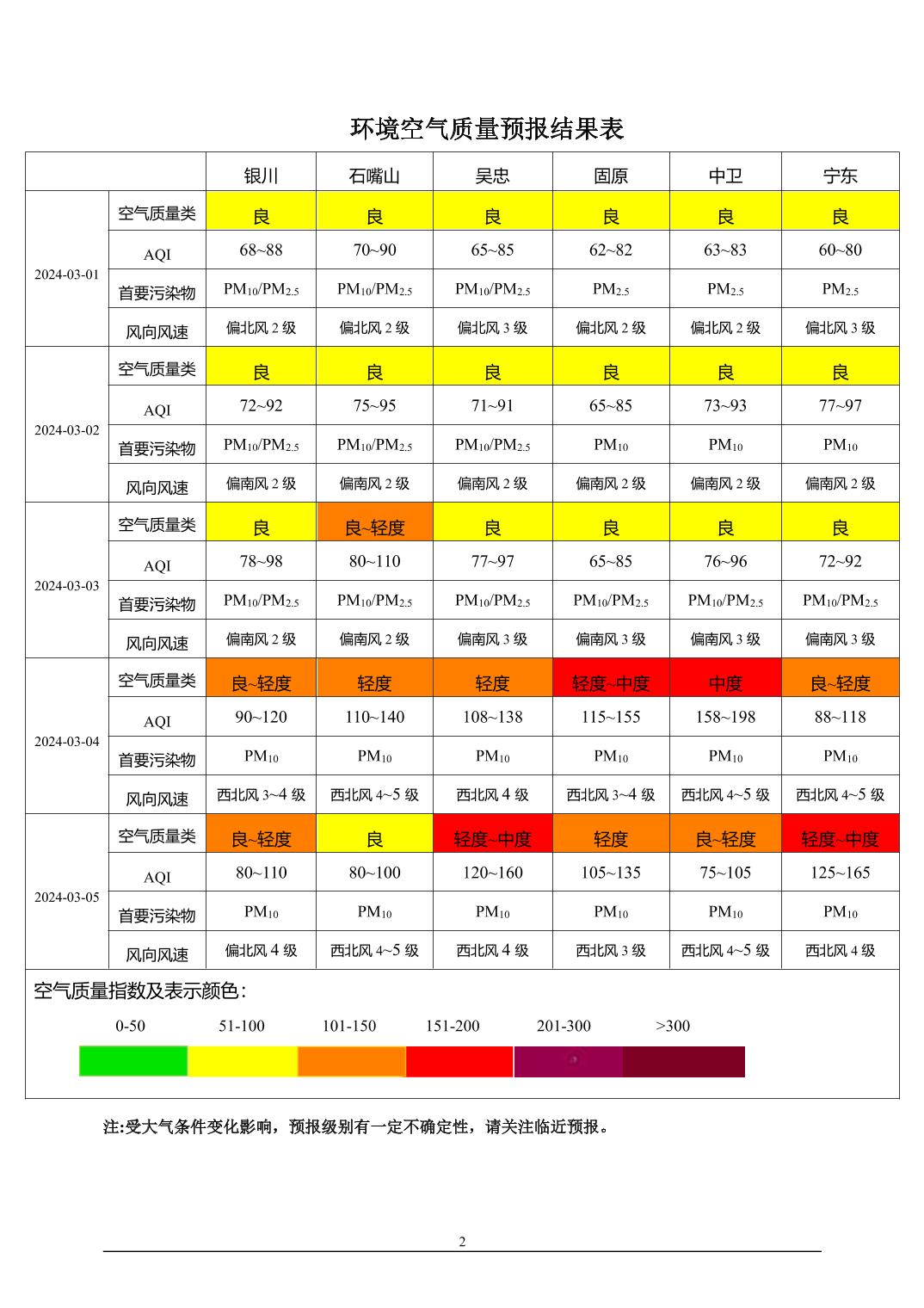 > 环境空气质量预报