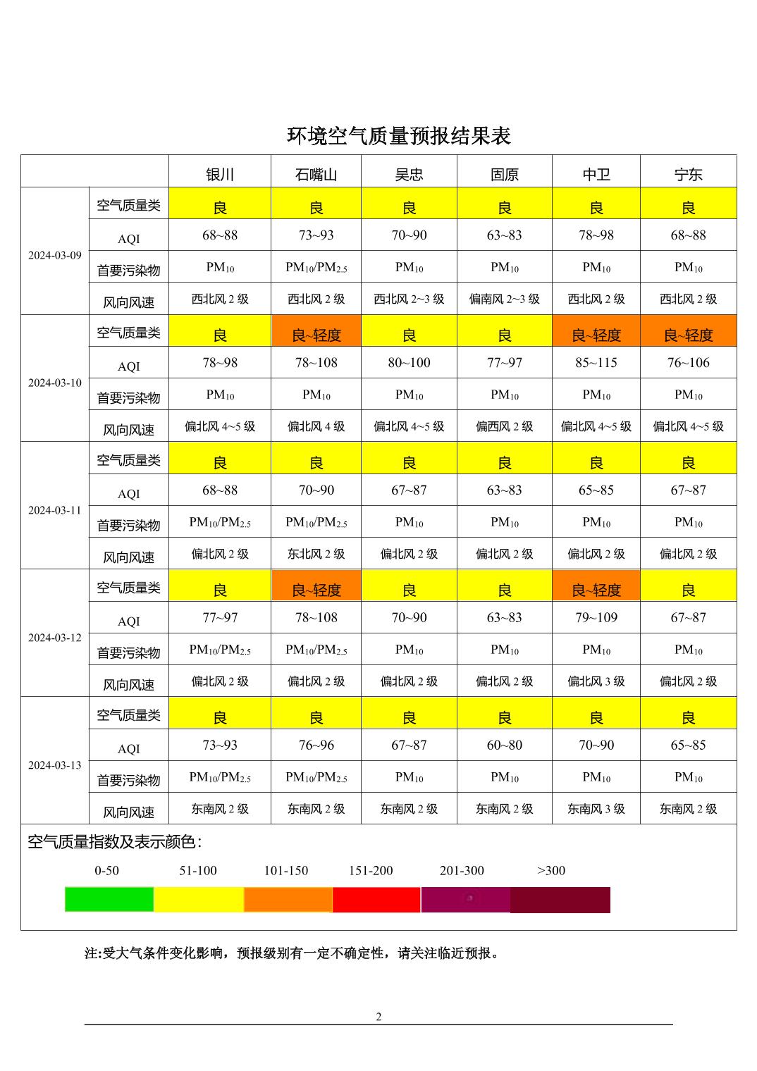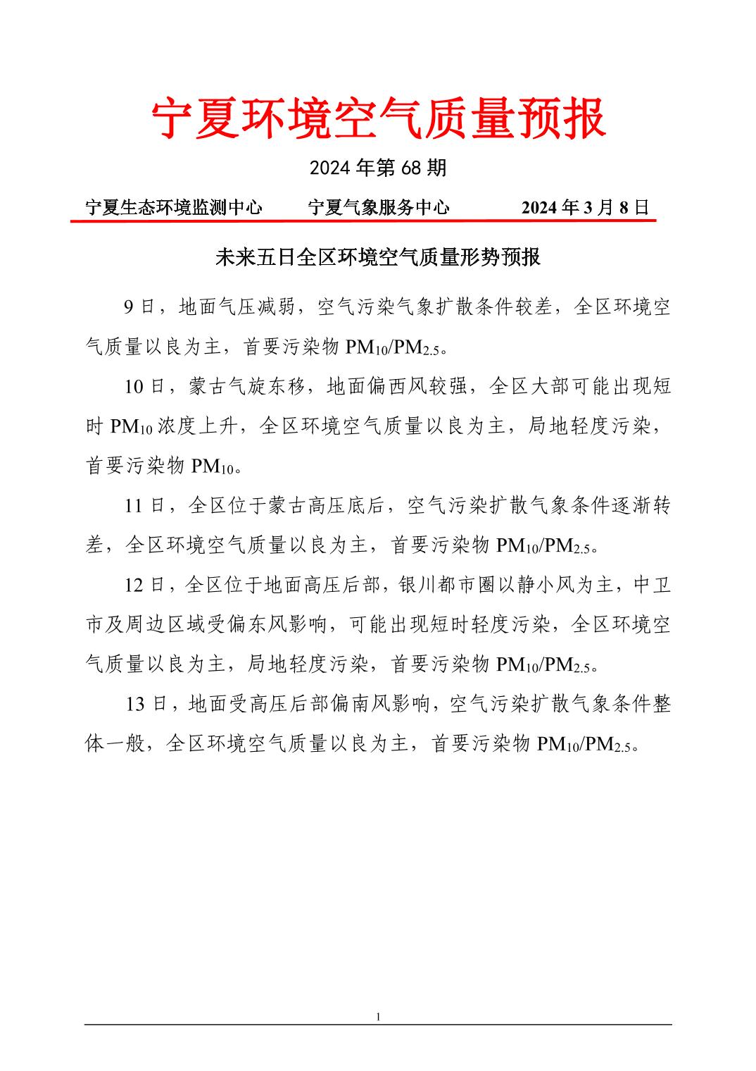 2024年3月8日宁夏环境空气质量预报信息