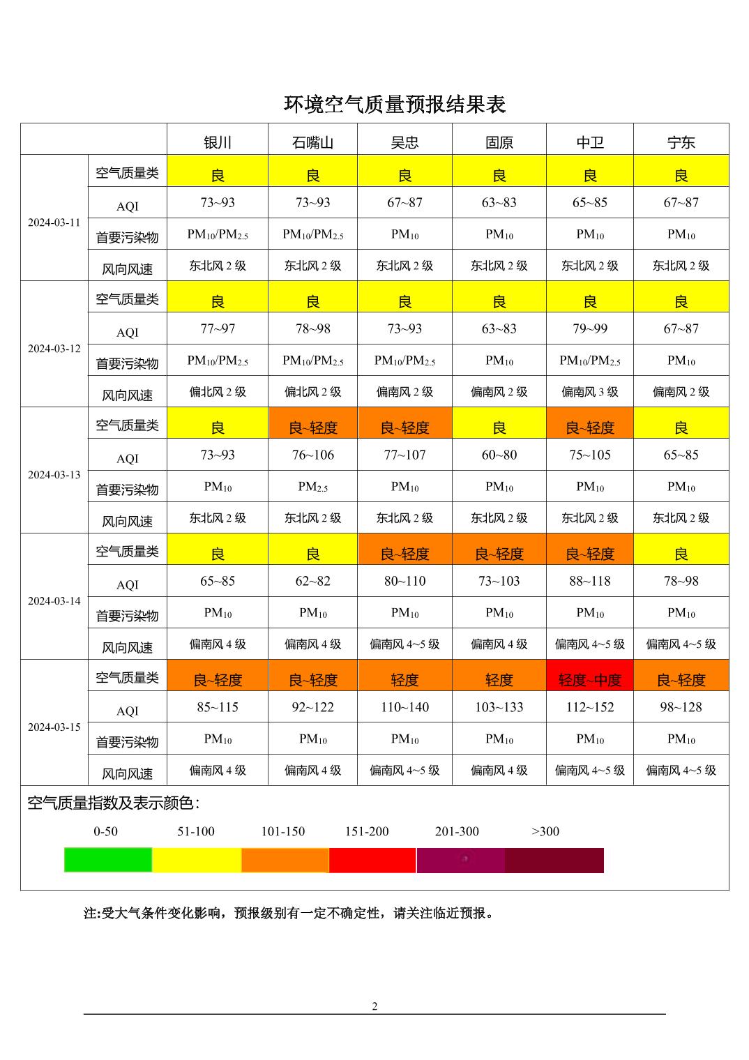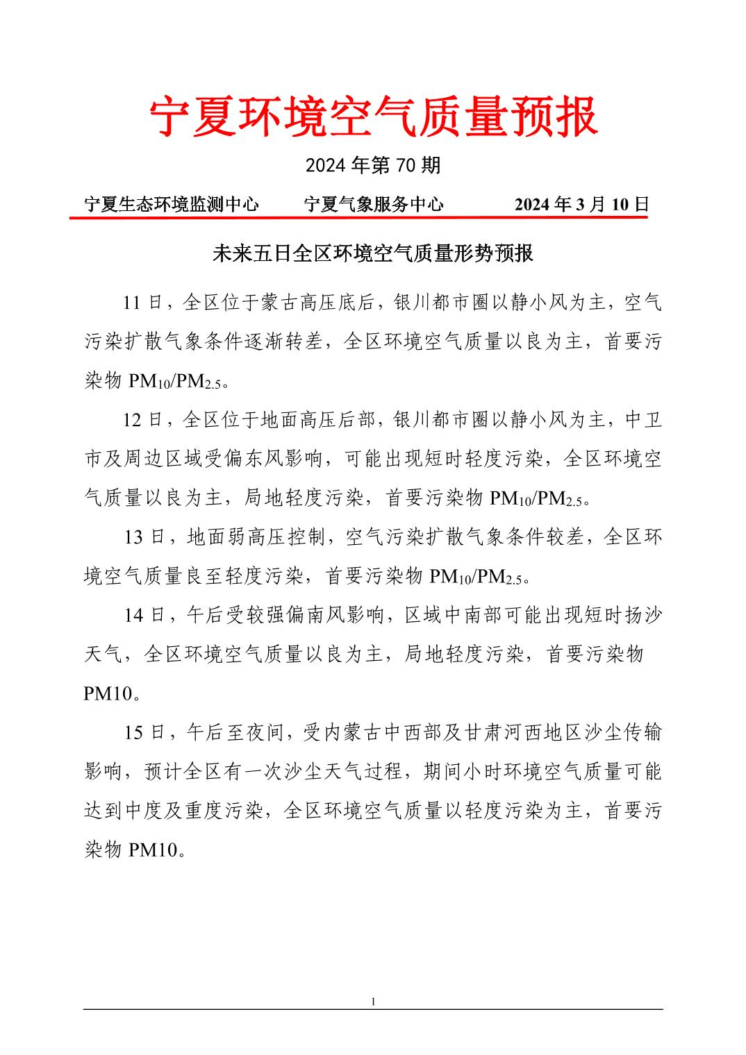 2024年3月10日宁夏环境空气质量预报信息