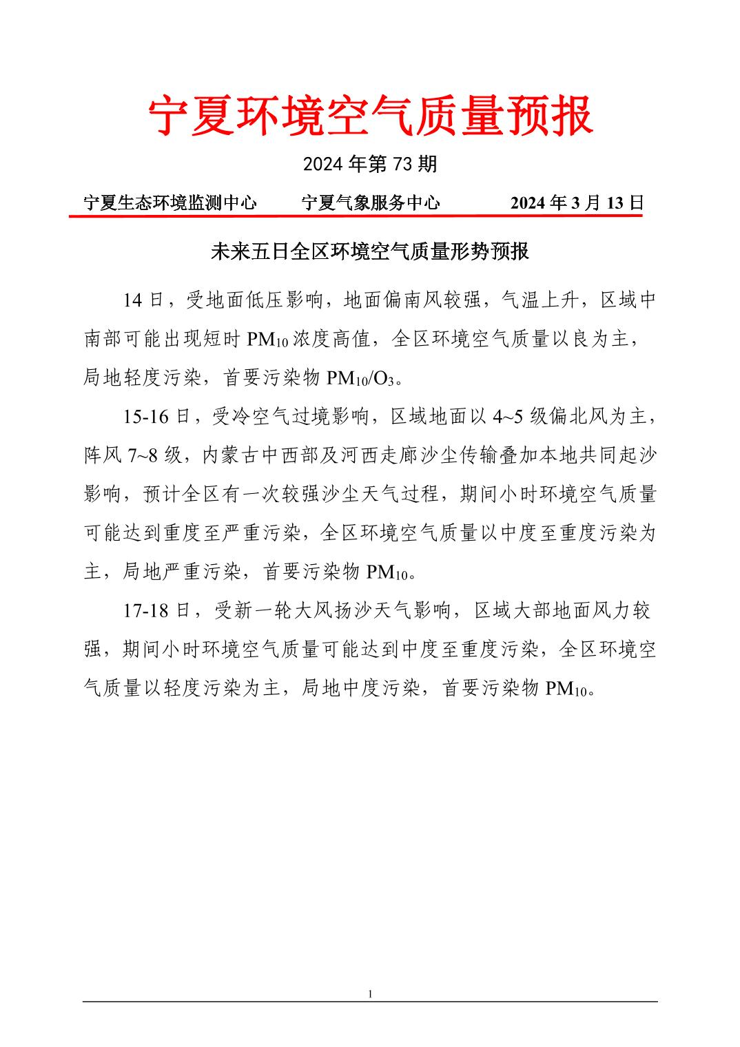 2024年3月13日宁夏环境空气质量预报信息