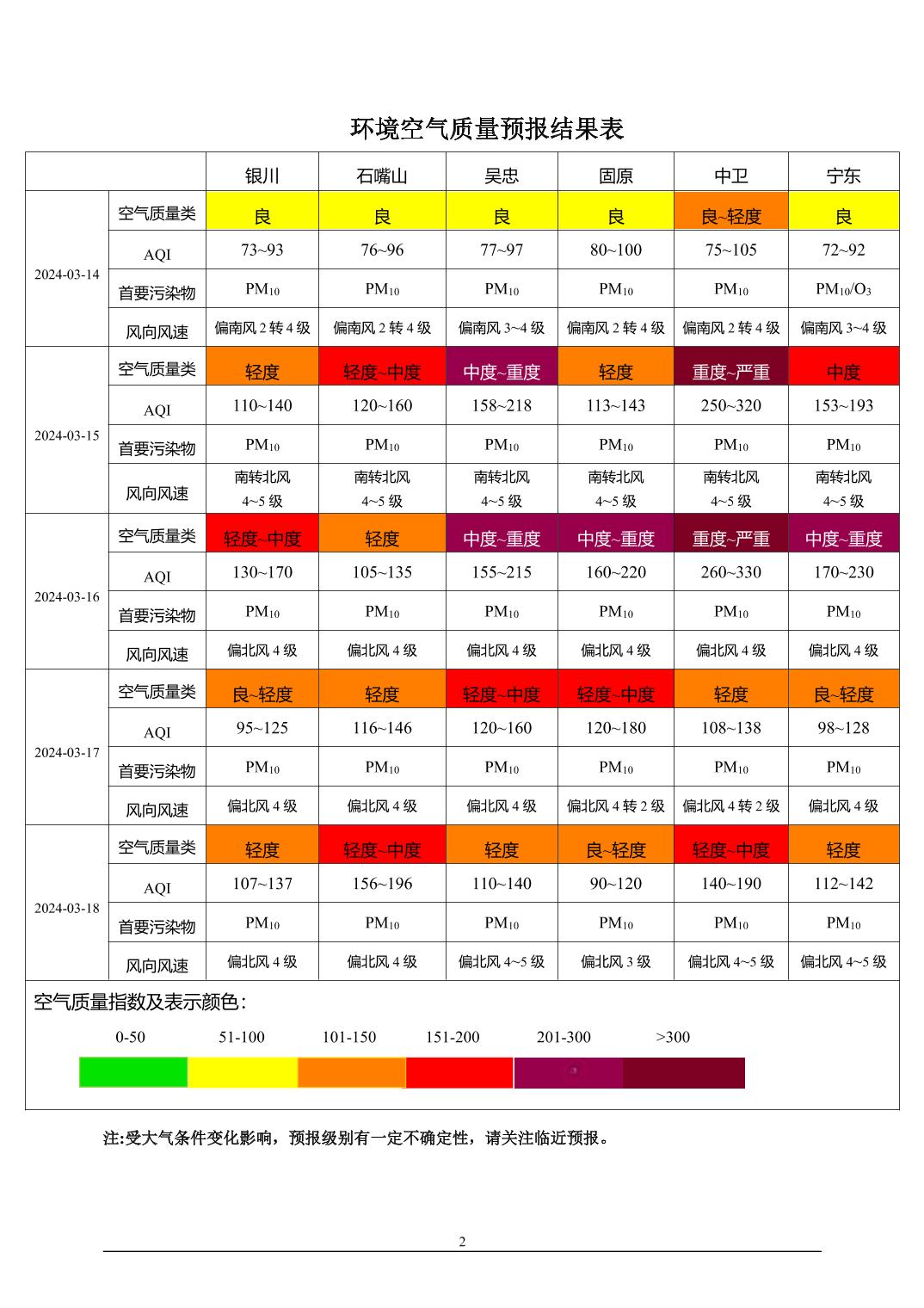 > 环境空气质量预报