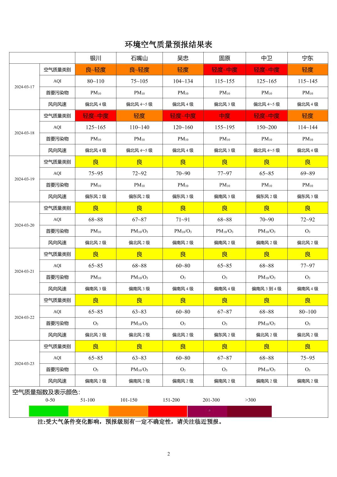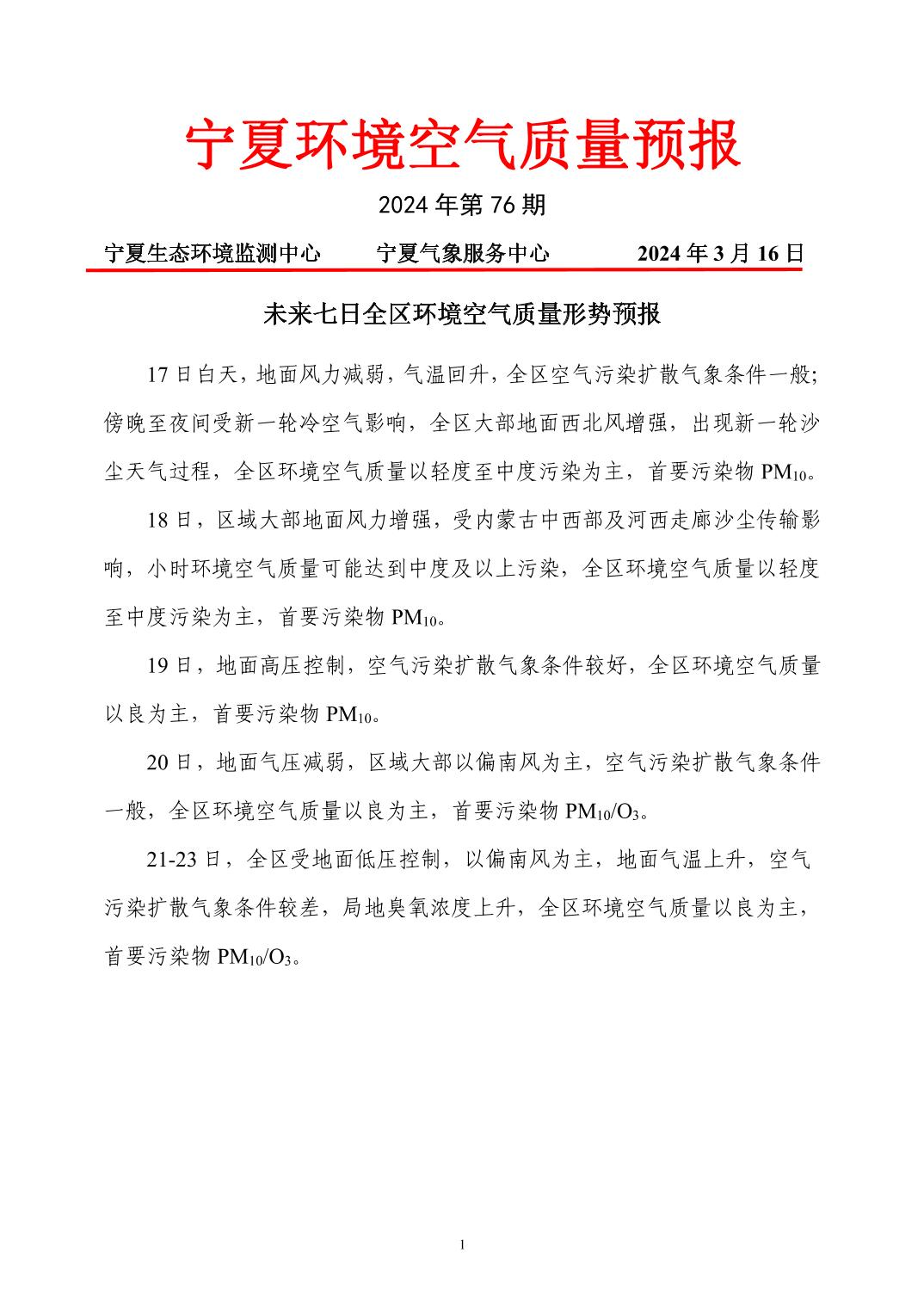 2024年3月16日宁夏环境空气质量预报信息