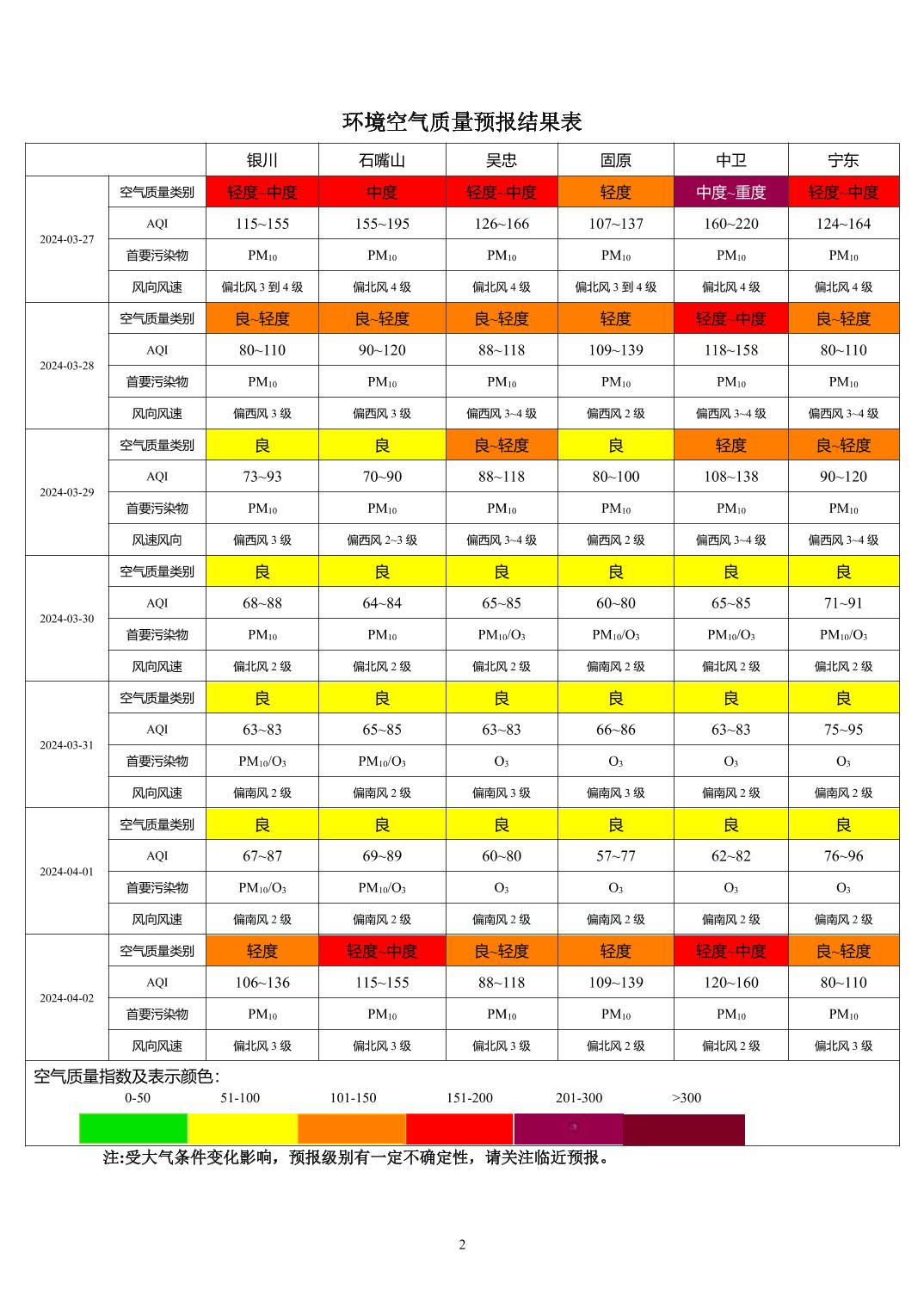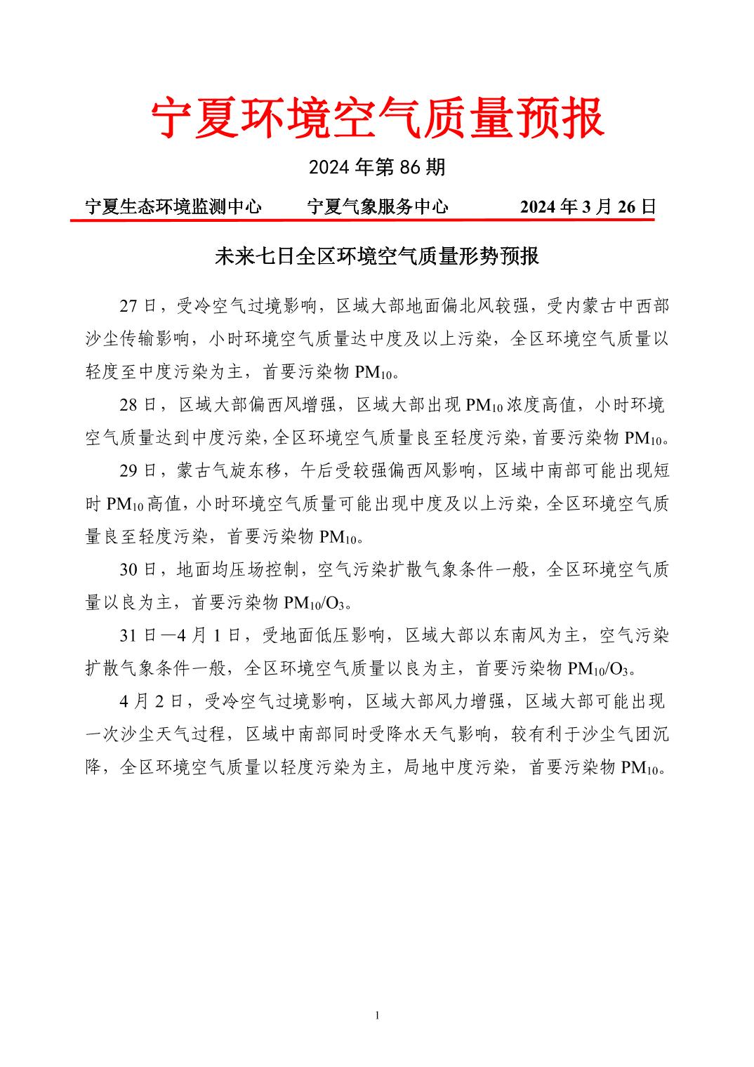 2024年3月26日宁夏环境空气质量预报信息