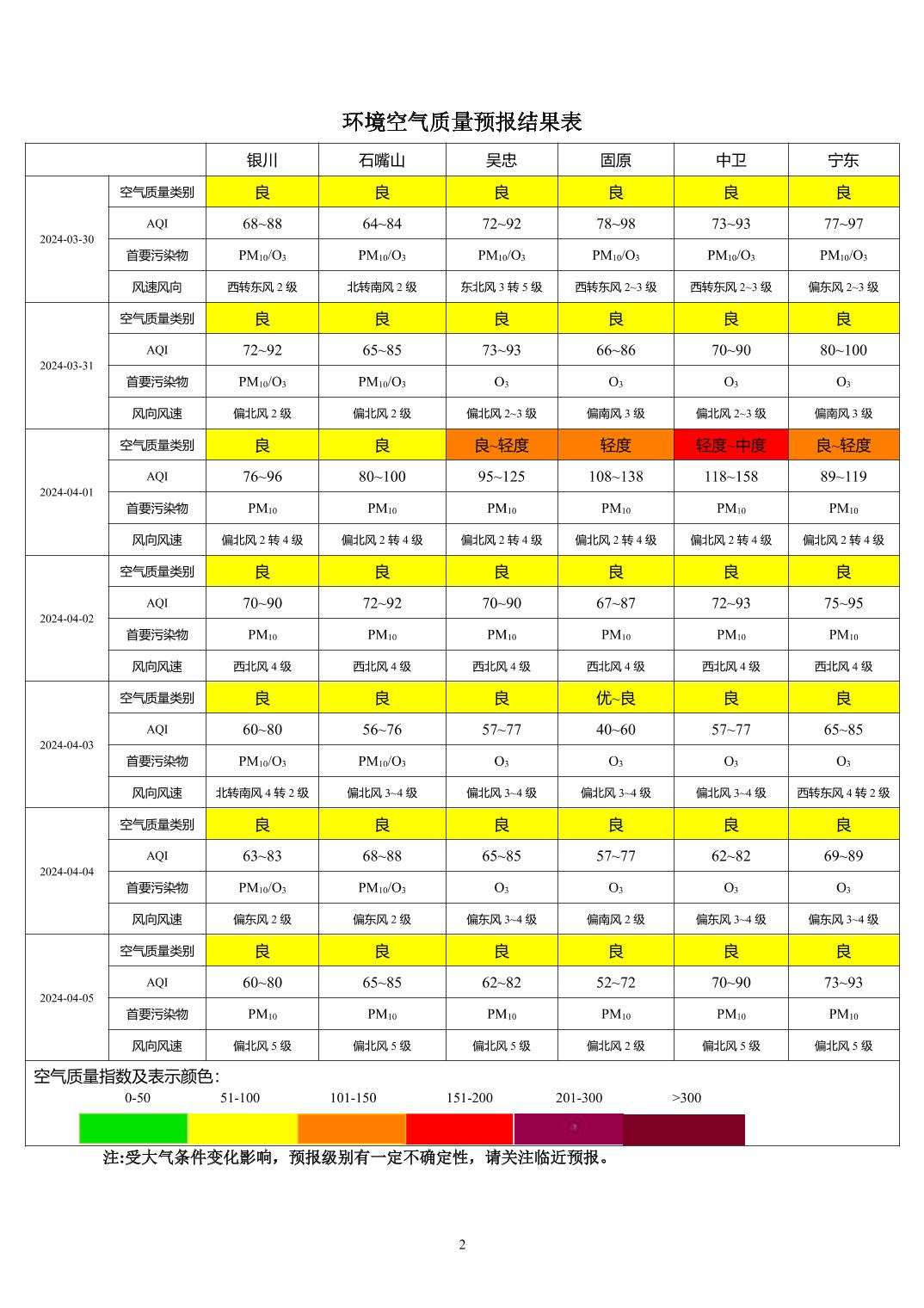 > 环境空气质量预报