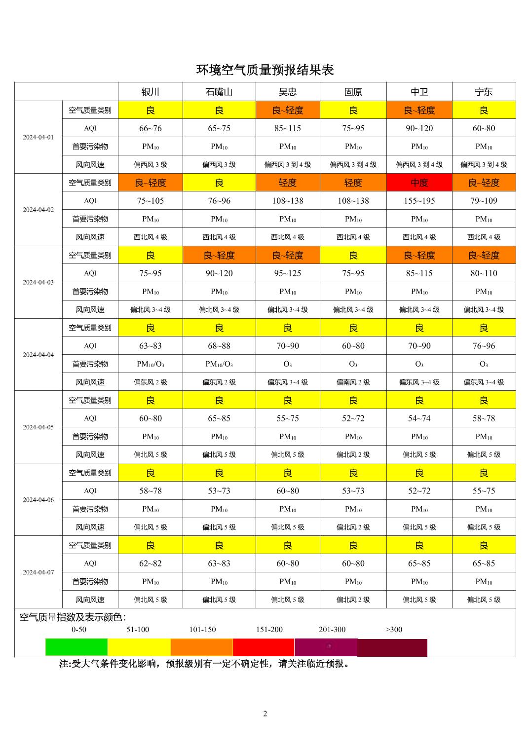 > 环境空气质量预报