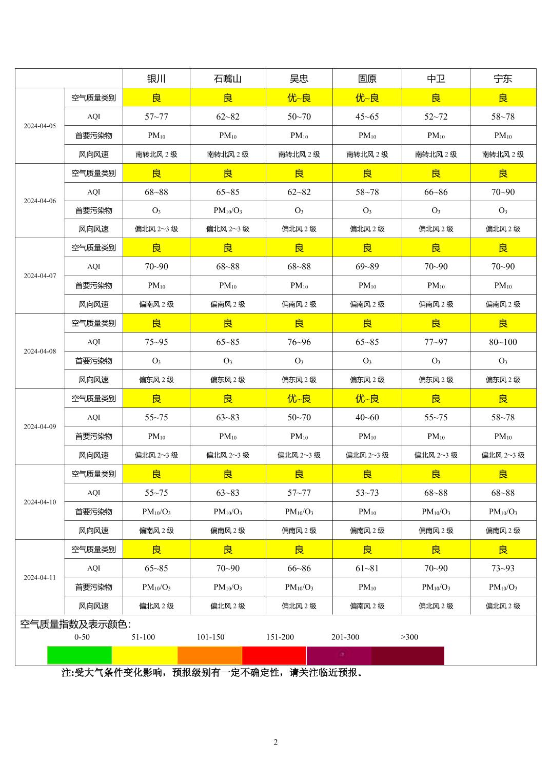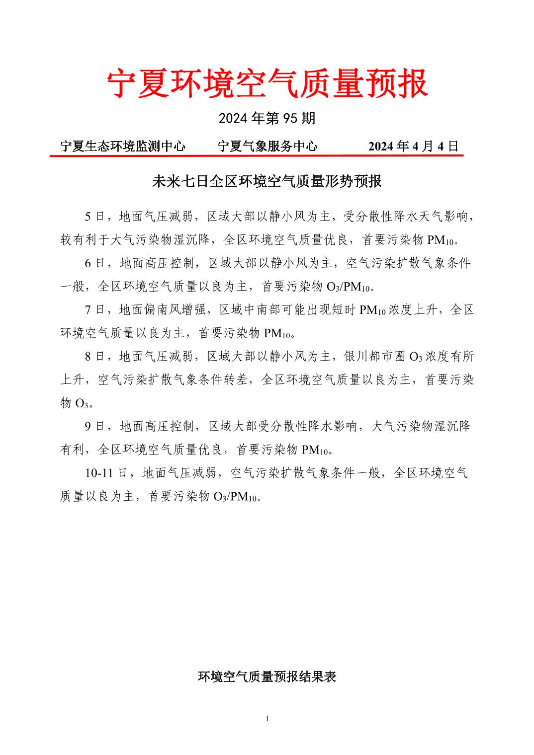 2024年4月4日宁夏环境空气质量预报信息