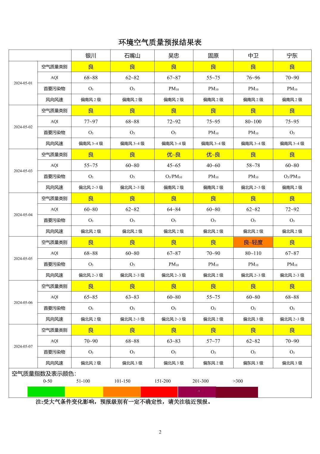 > 环境空气质量预报