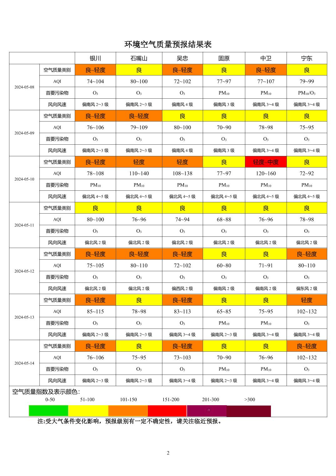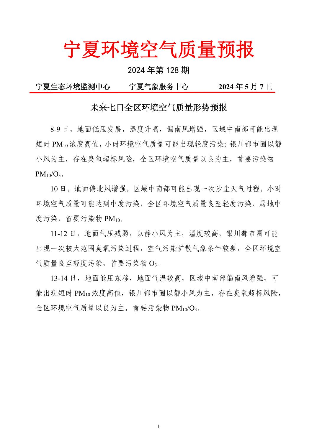 2024年5月7日宁夏环境空气质量预报信息