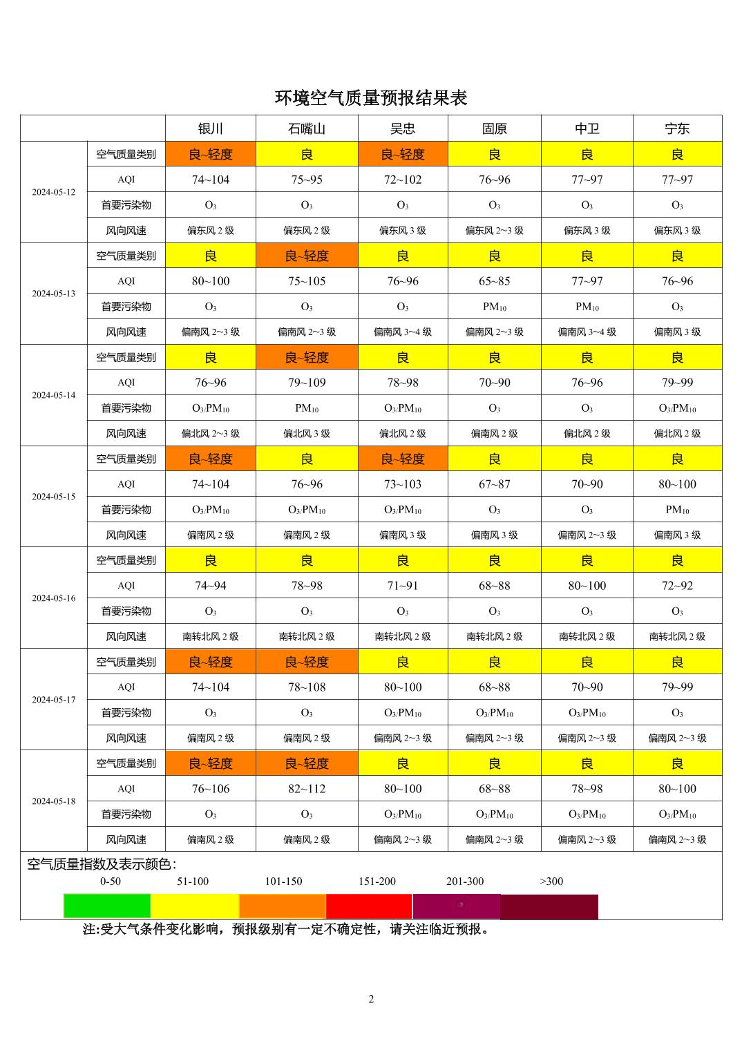 > 环境空气质量预报