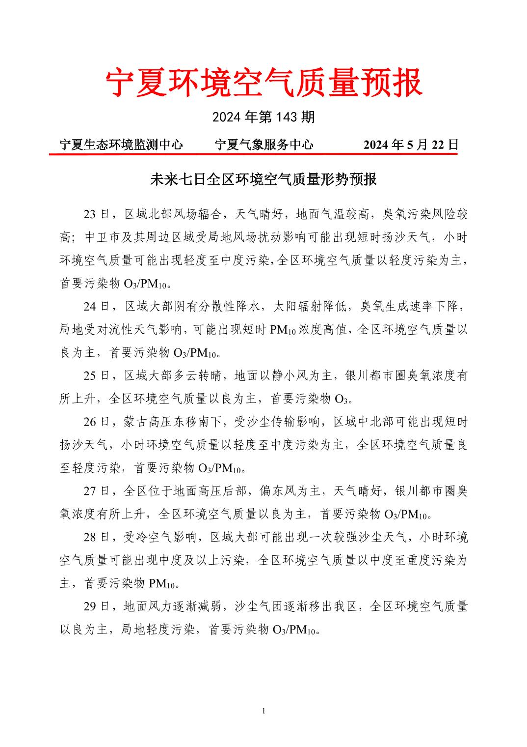 2024年5月22日宁夏环境空气质量预报信息