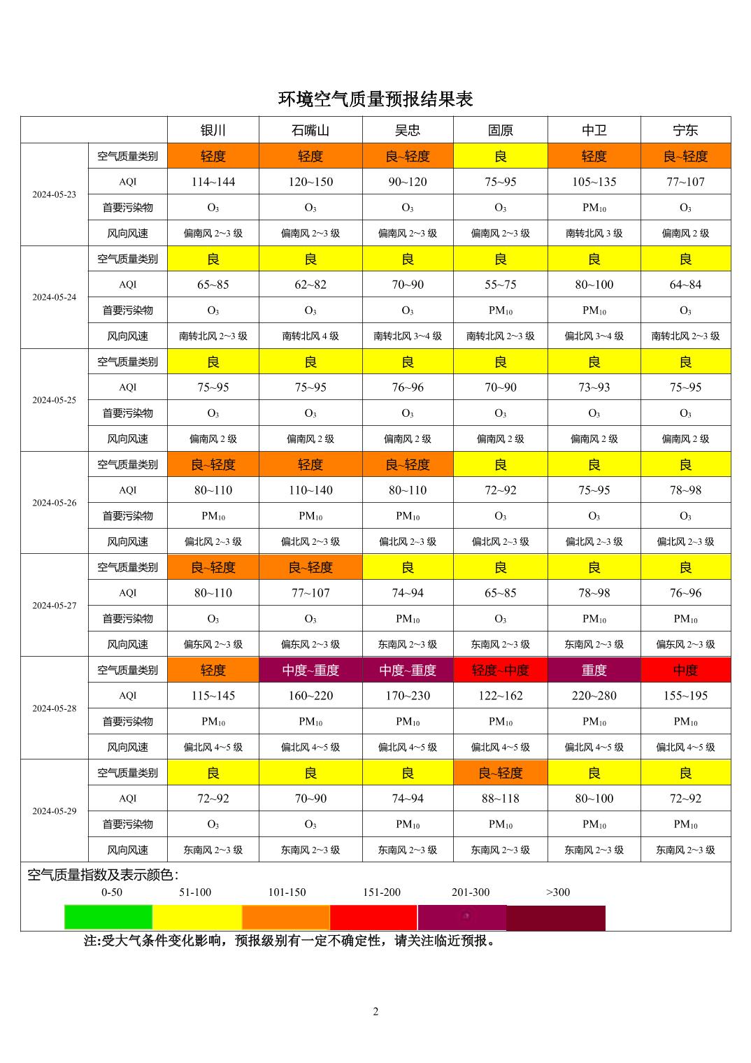 > 环境空气质量预报