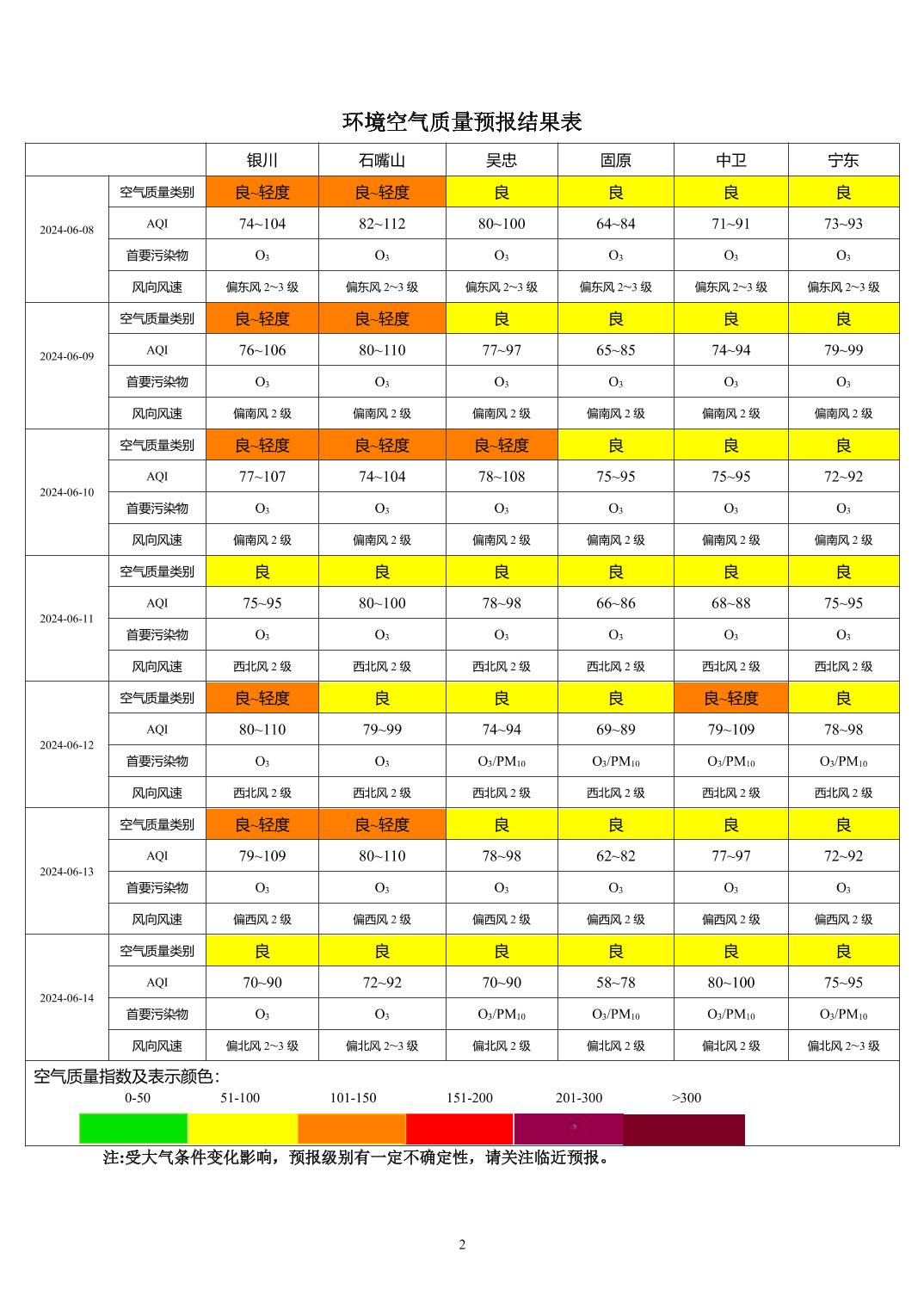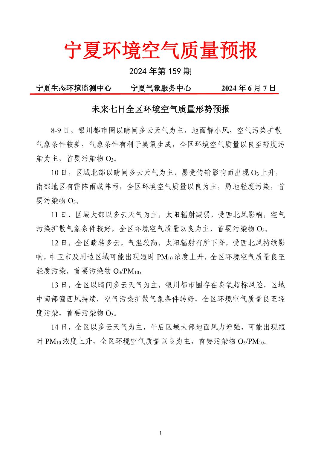 2024年6月7日宁夏环境空气质量预报信息