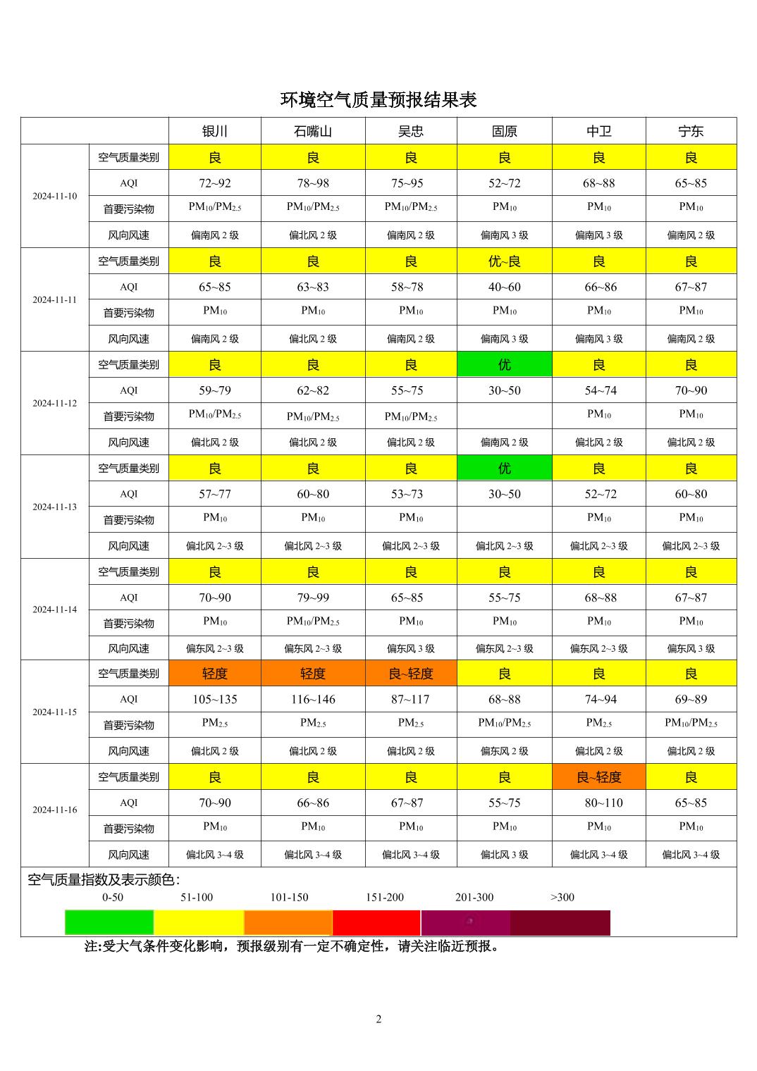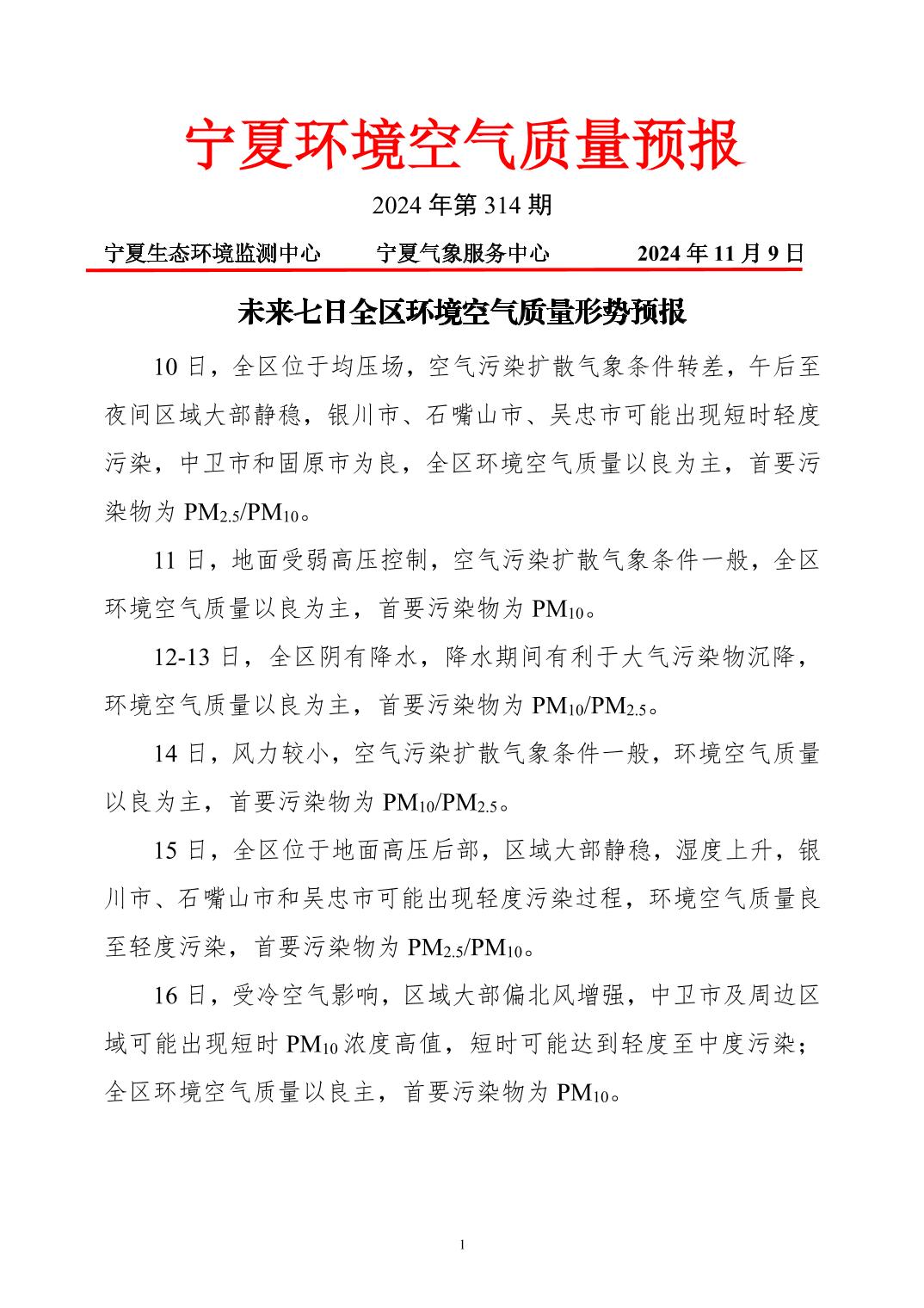 2024年11月9日宁夏环境空气质量预报信息