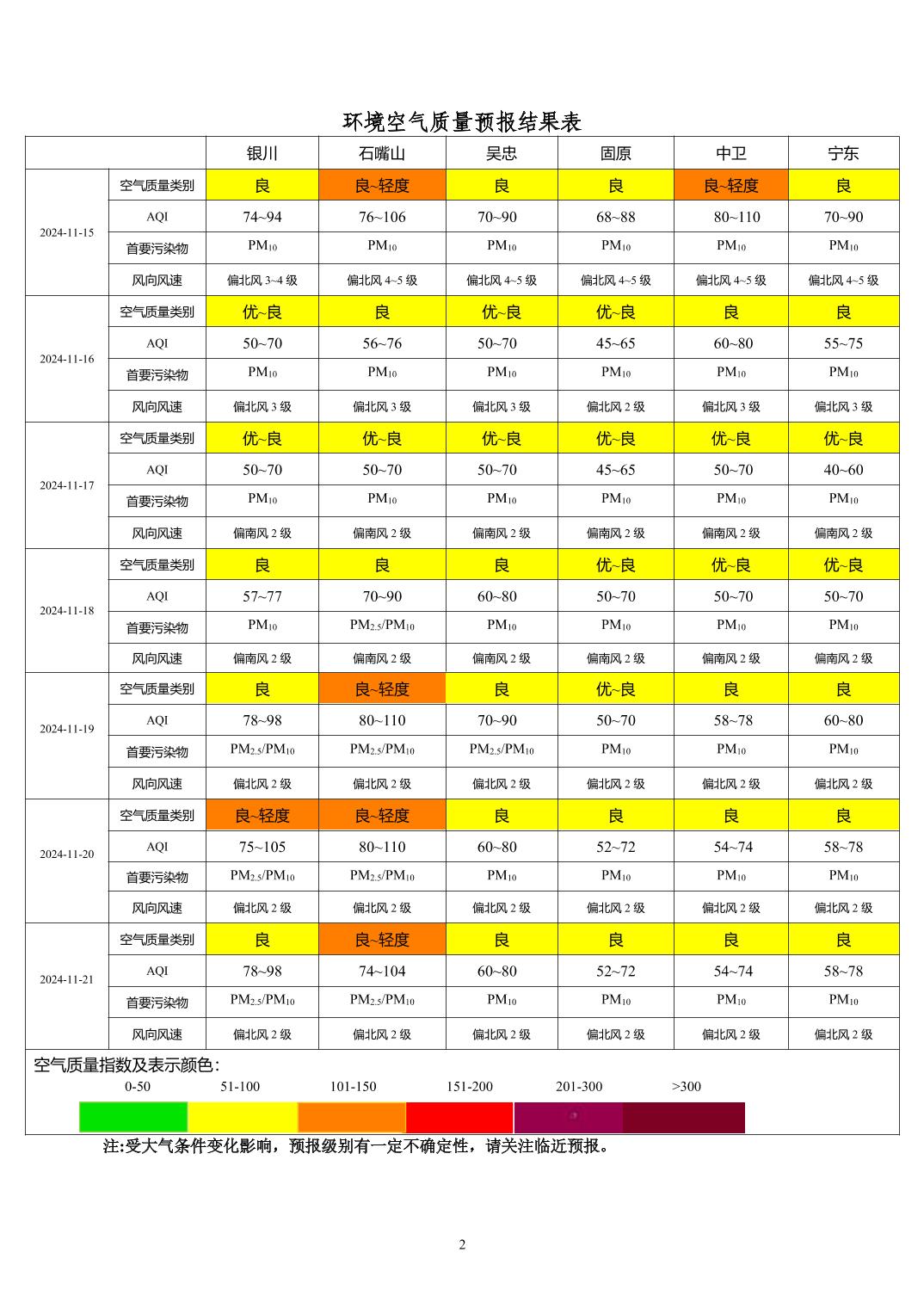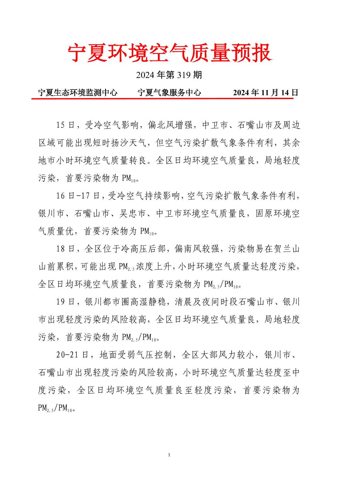 2024年11月14日宁夏环境空气质量预报信息