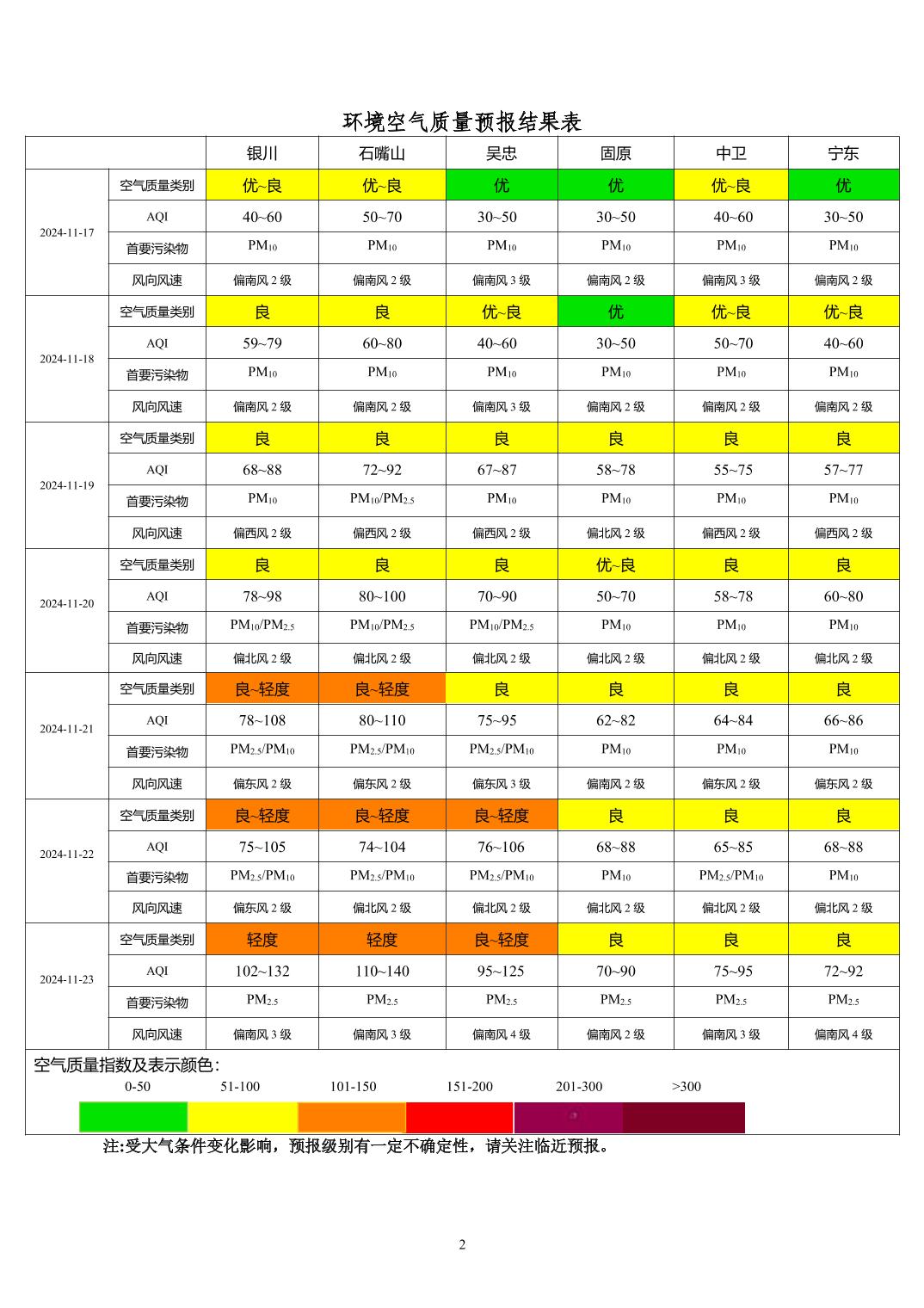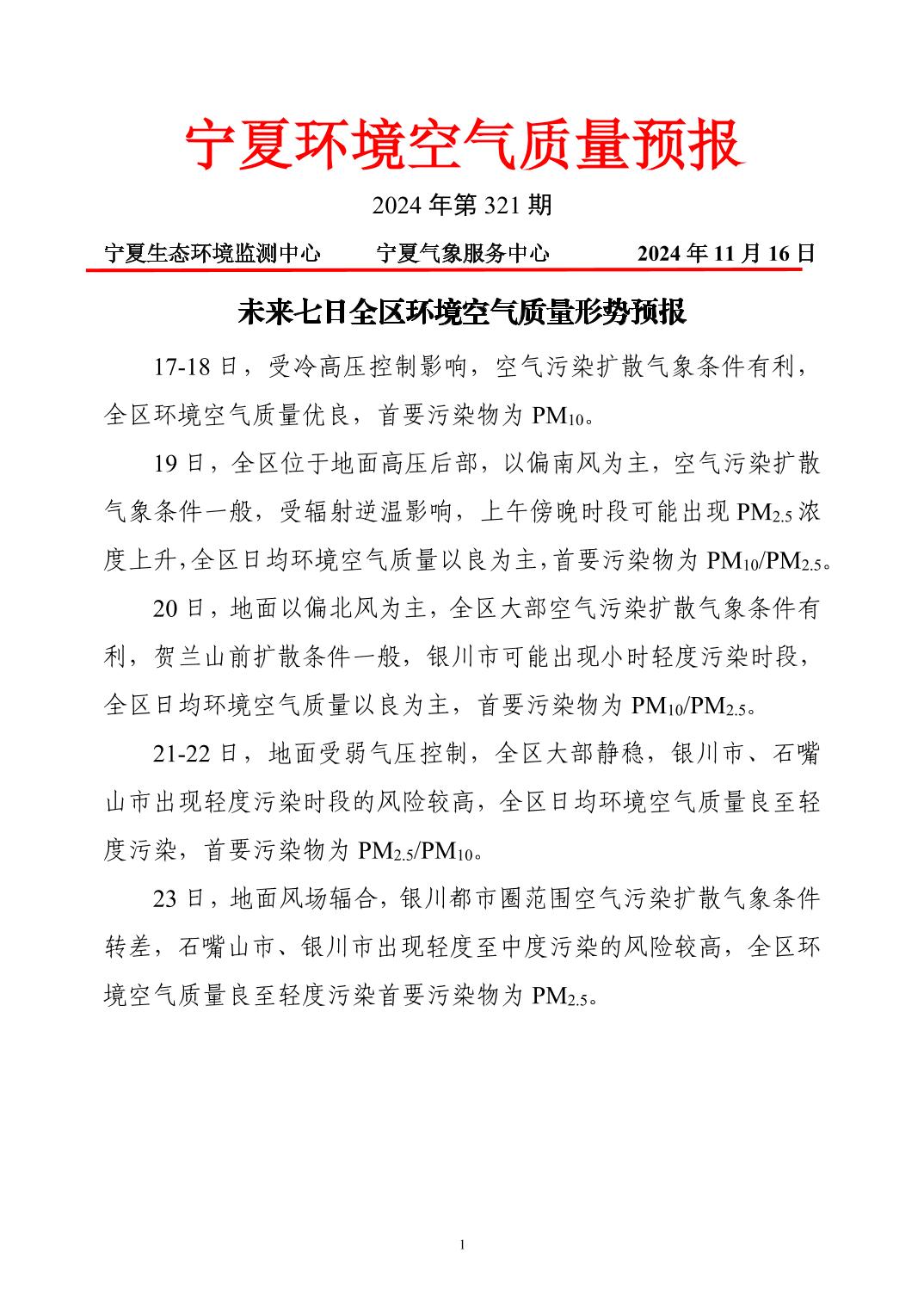 2024年11月16日宁夏环境空气质量预报信息