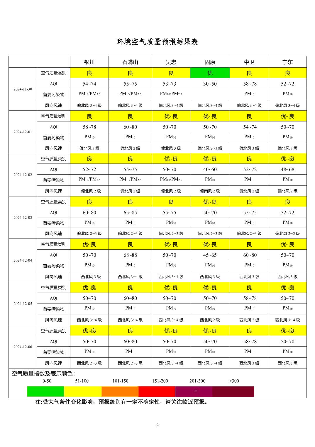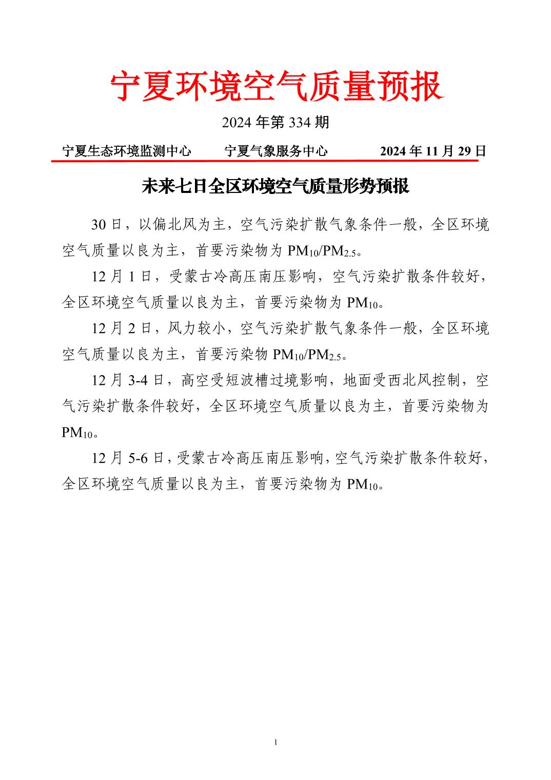 2024年11月29日宁夏环境空气质量预报信息