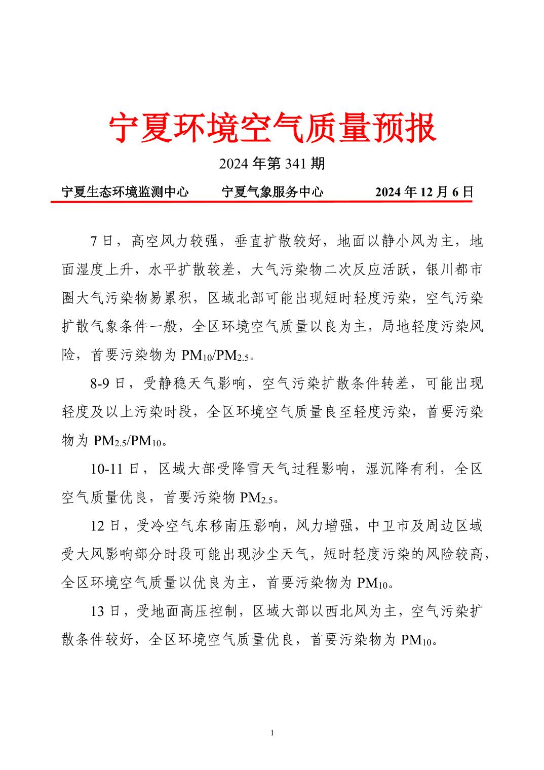 2024年12月6日宁夏环境空气质量预报信息