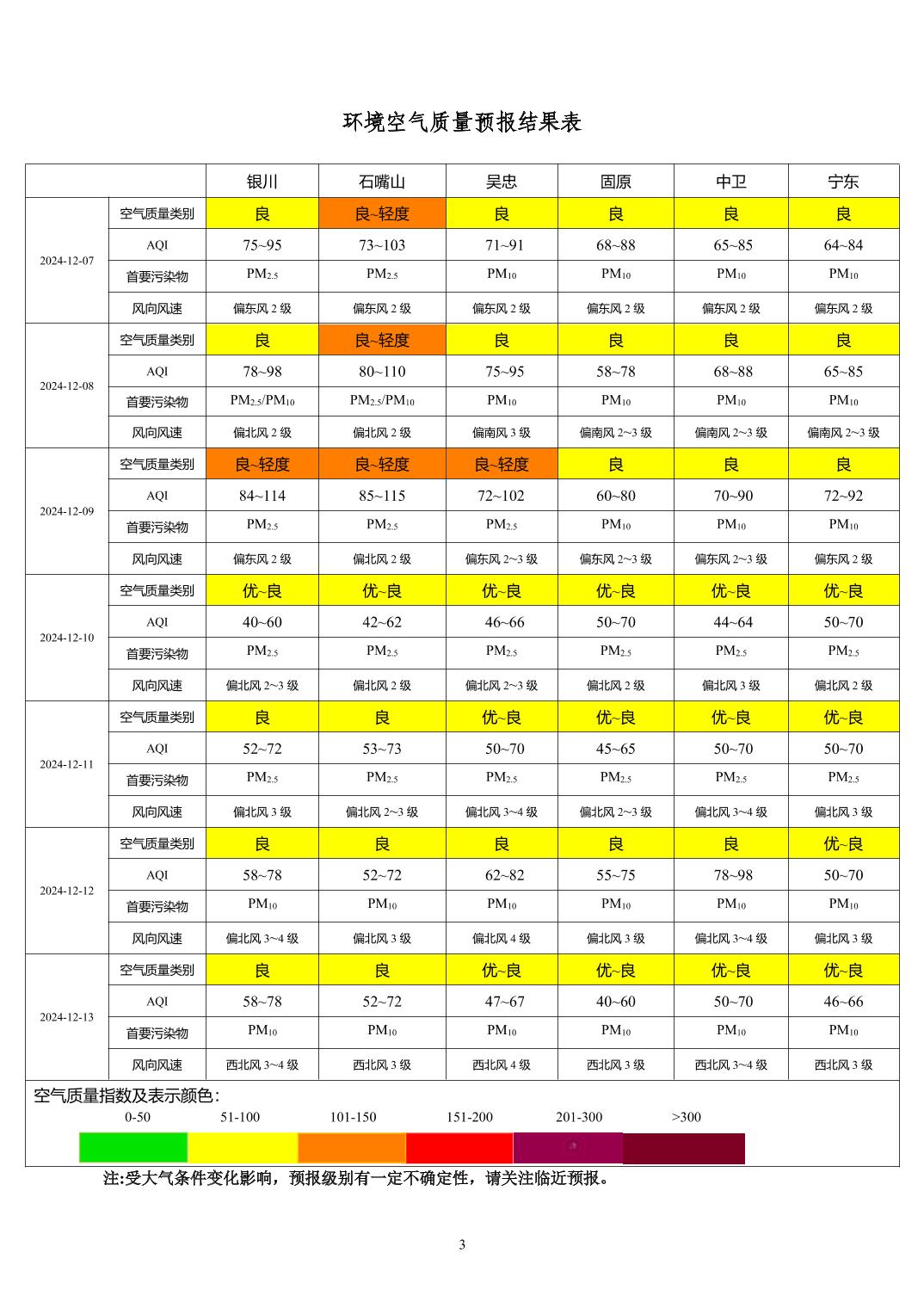 > 环境空气质量预报