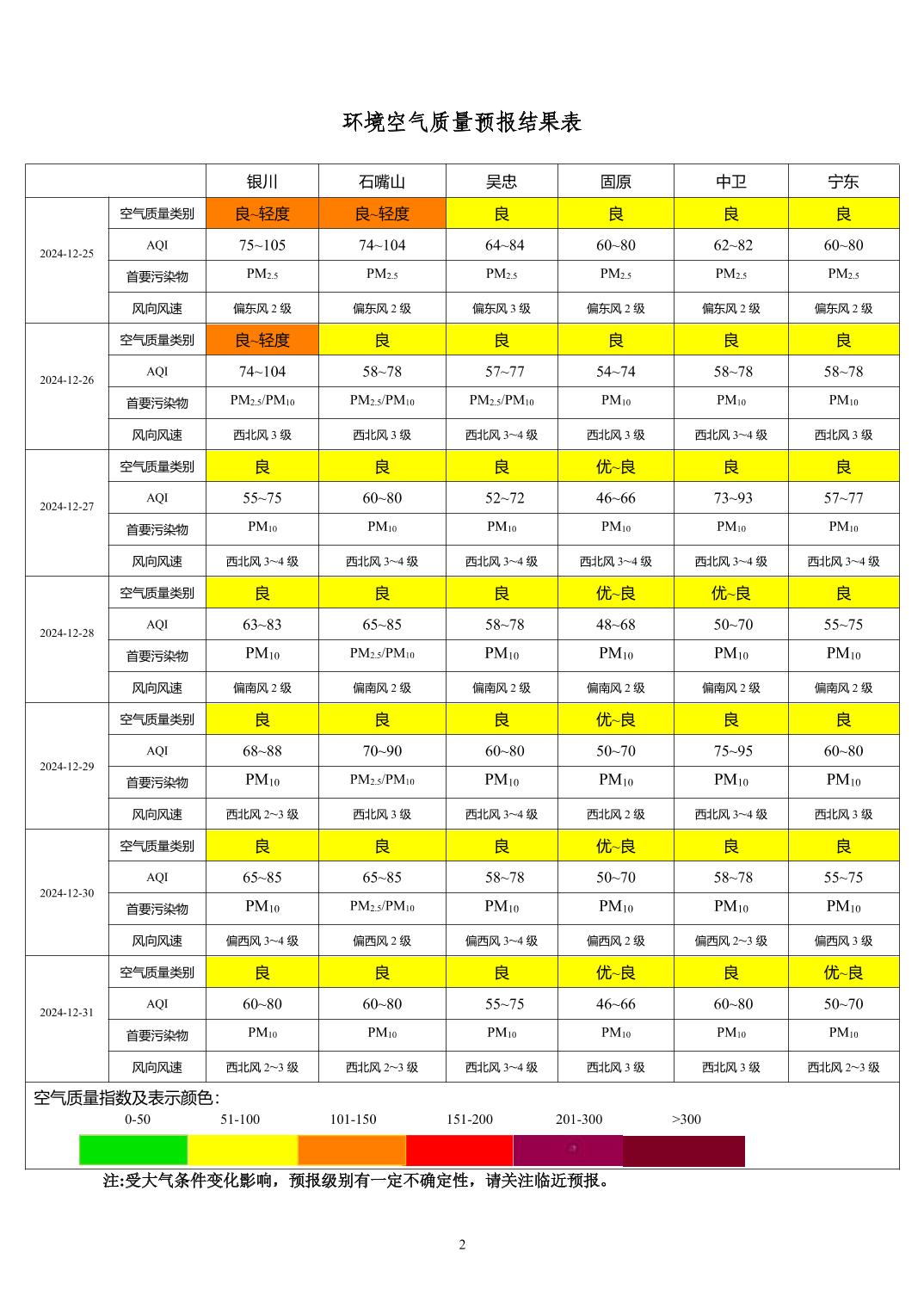 > 环境空气质量预报