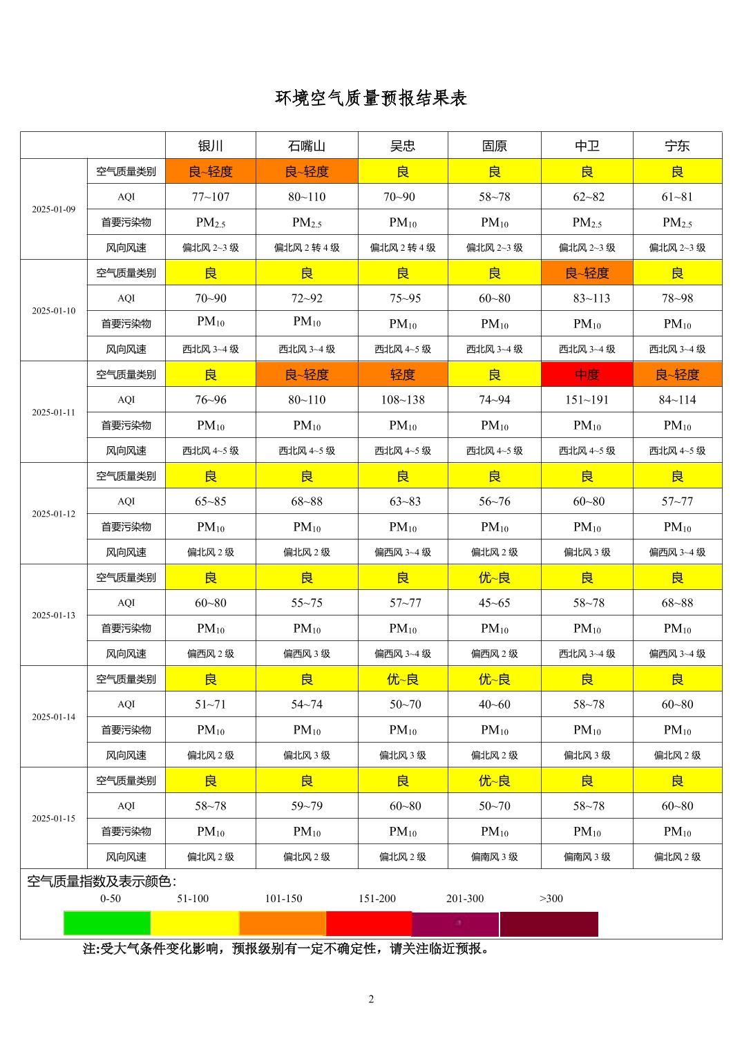 > 环境空气质量预报