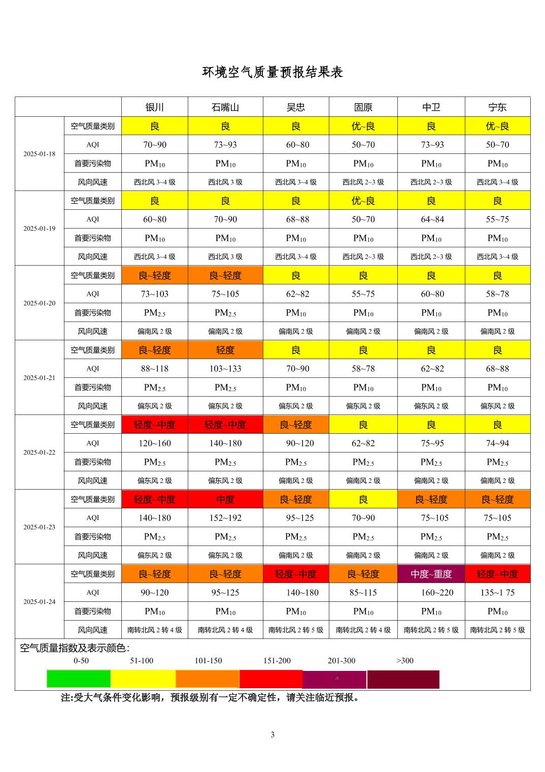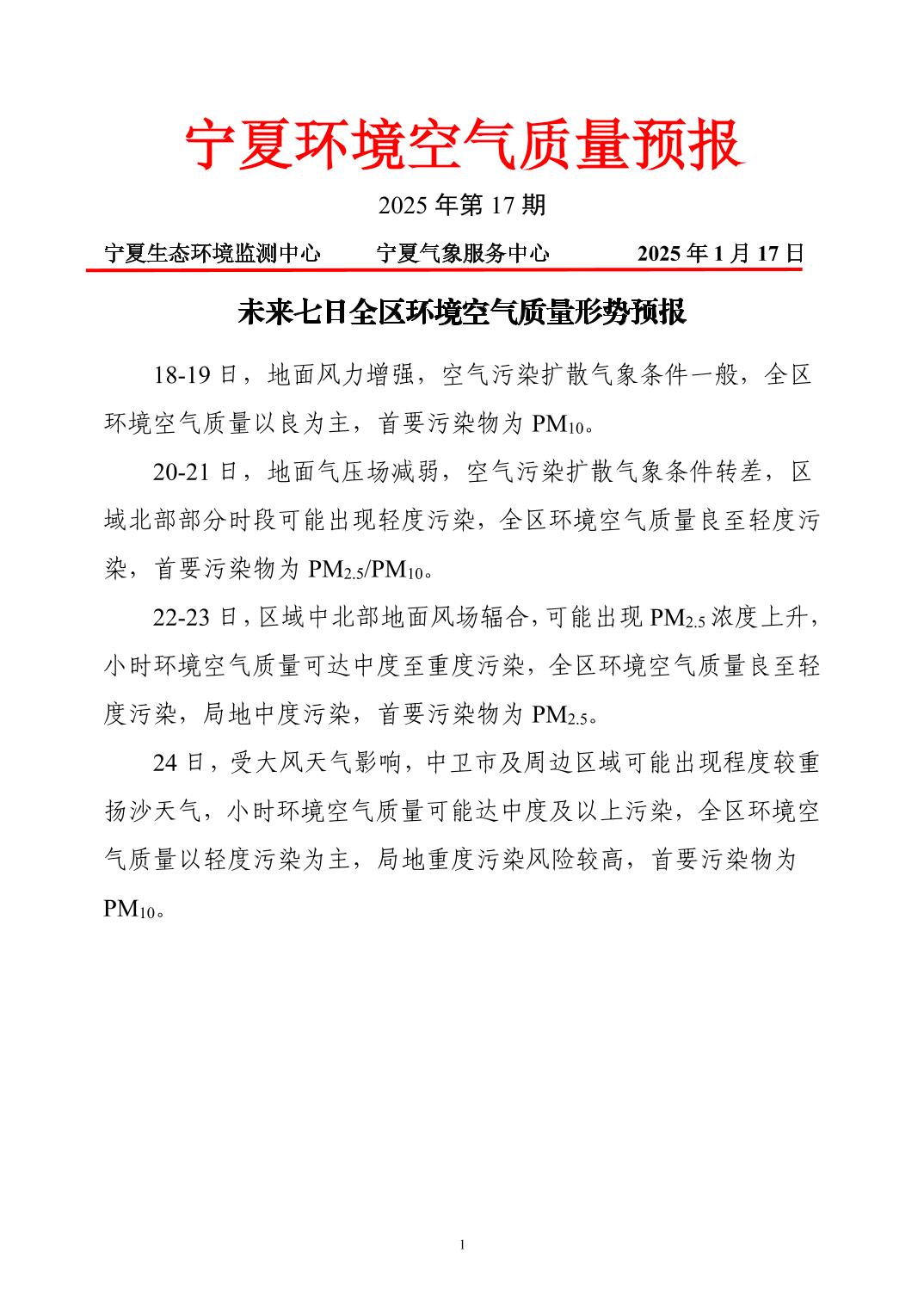 2025年1月17日宁夏环境空气质量预报信息