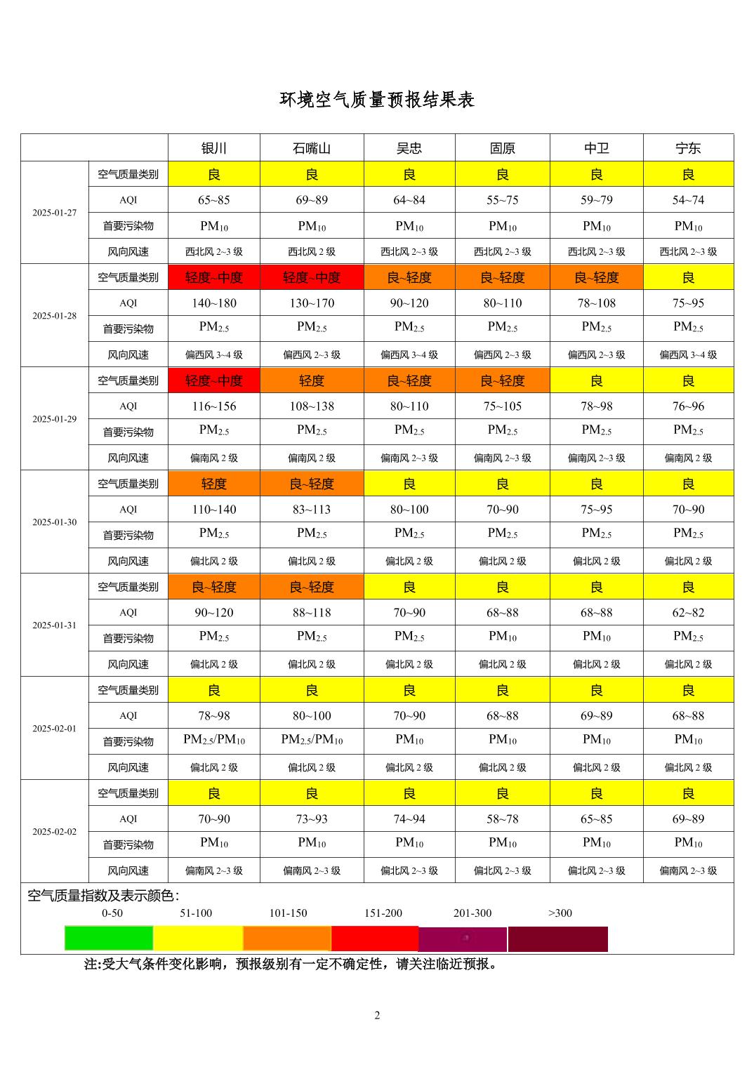 > 环境空气质量预报