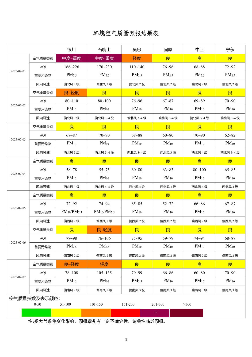 > 环境空气质量预报