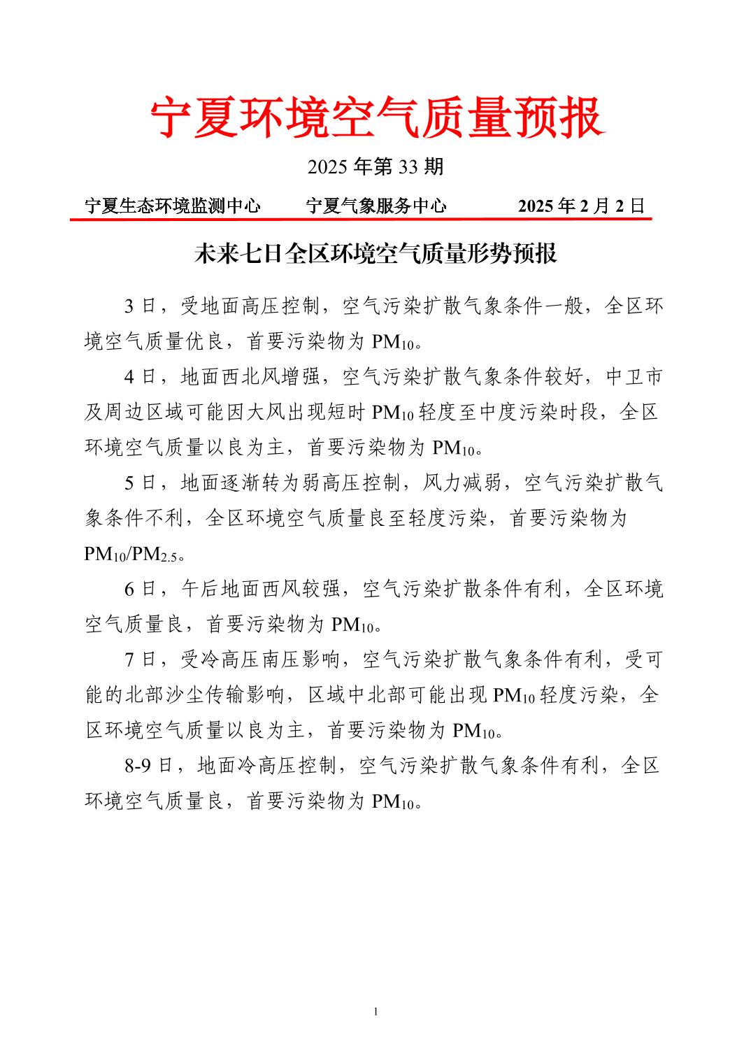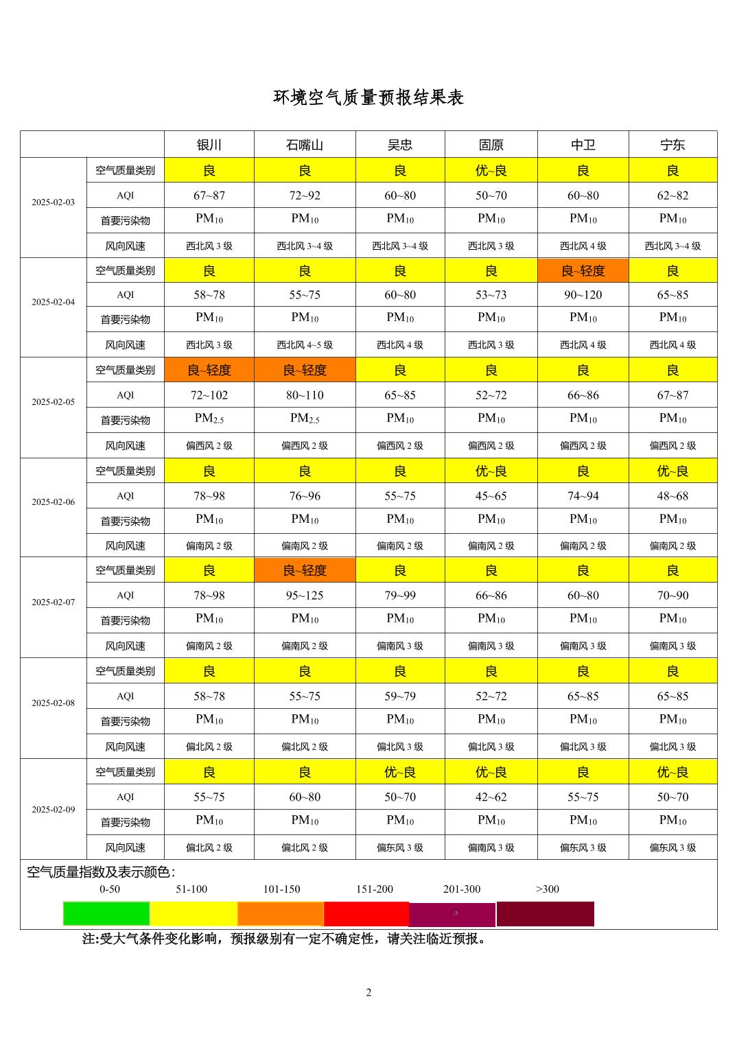 2025年2月2日宁夏环境空气质量预报信息