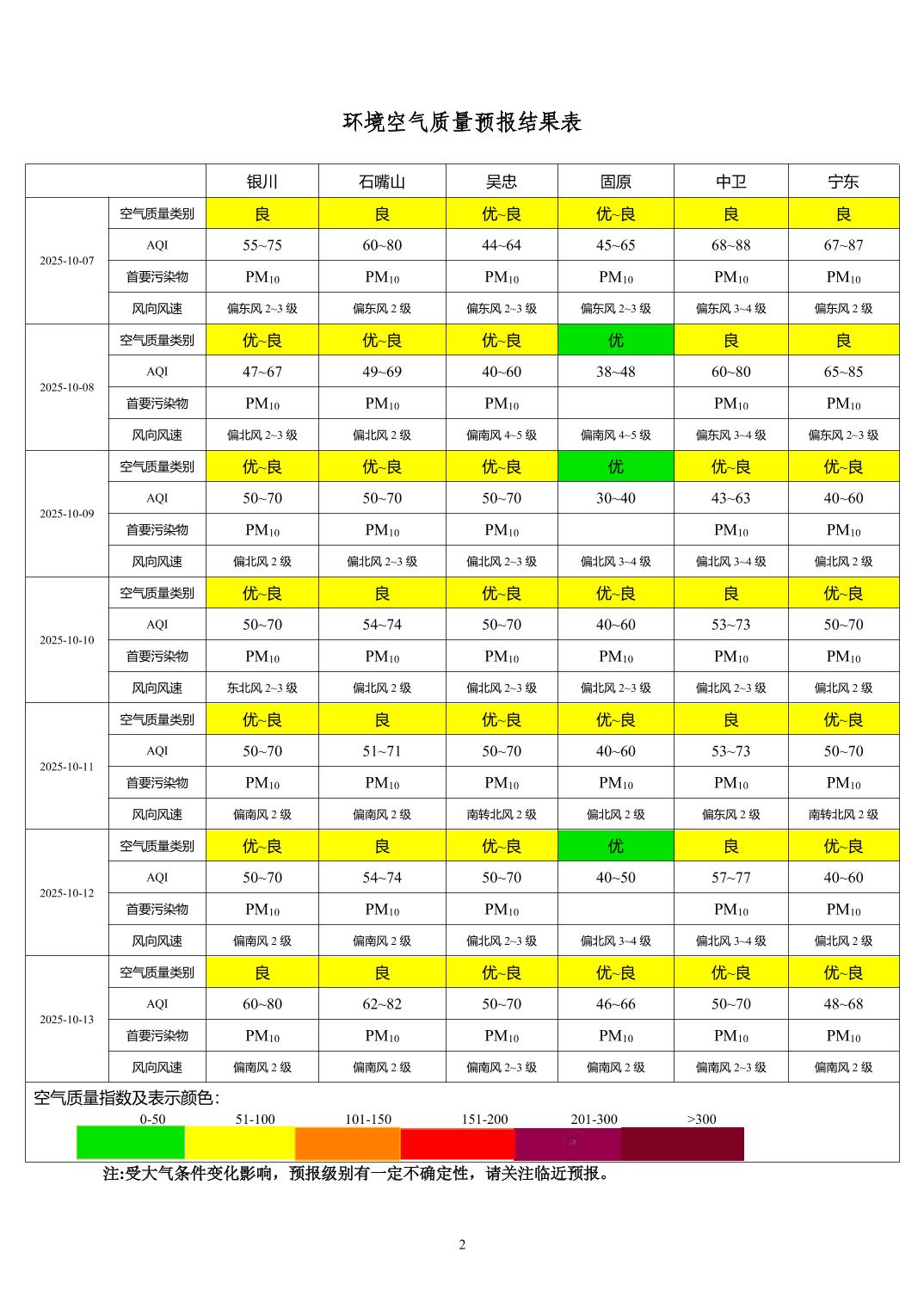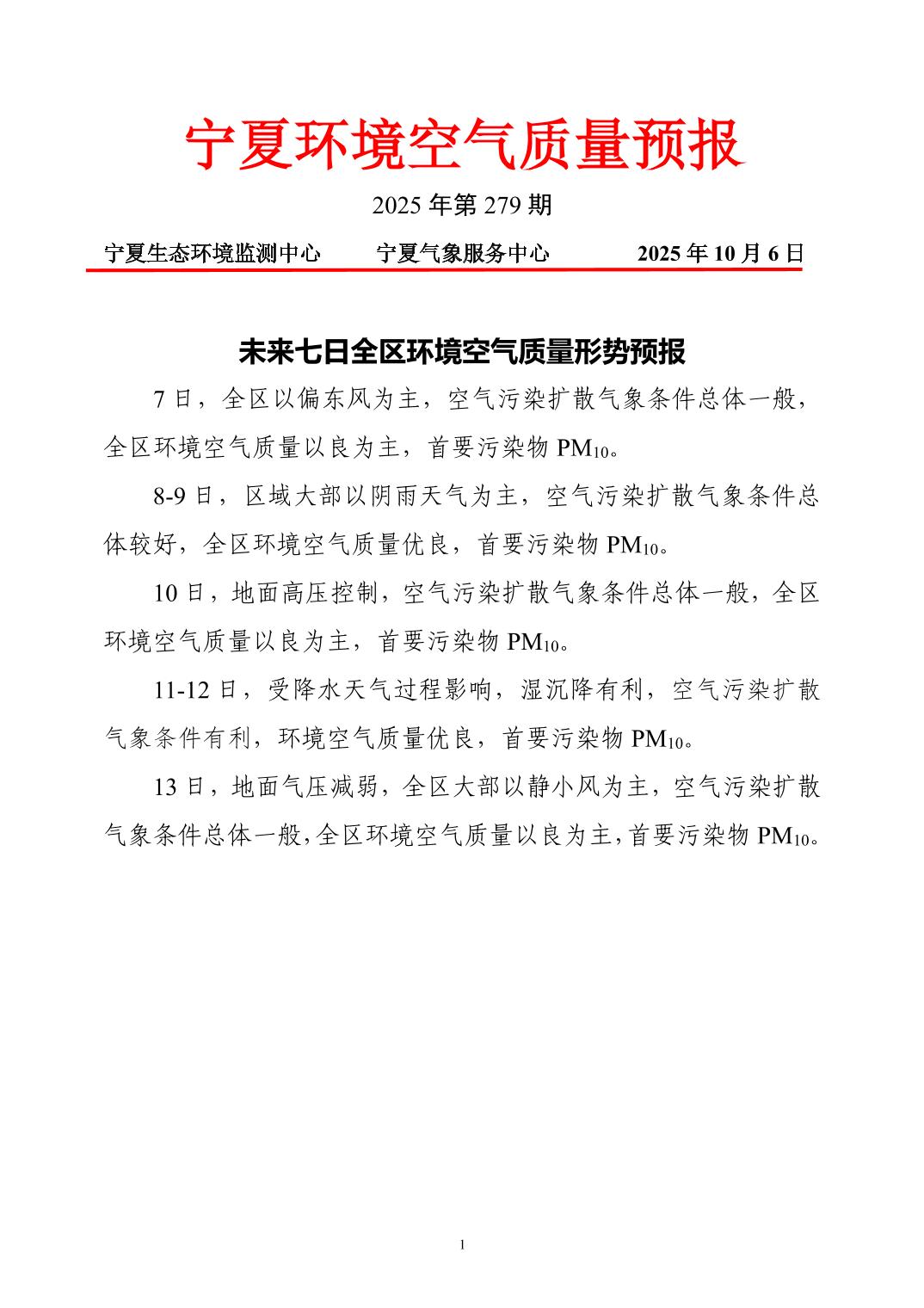 2025年10月6日宁夏环境空气质量预报信息