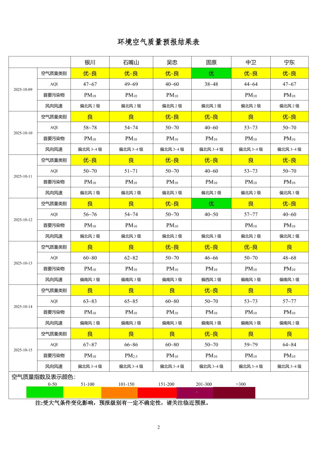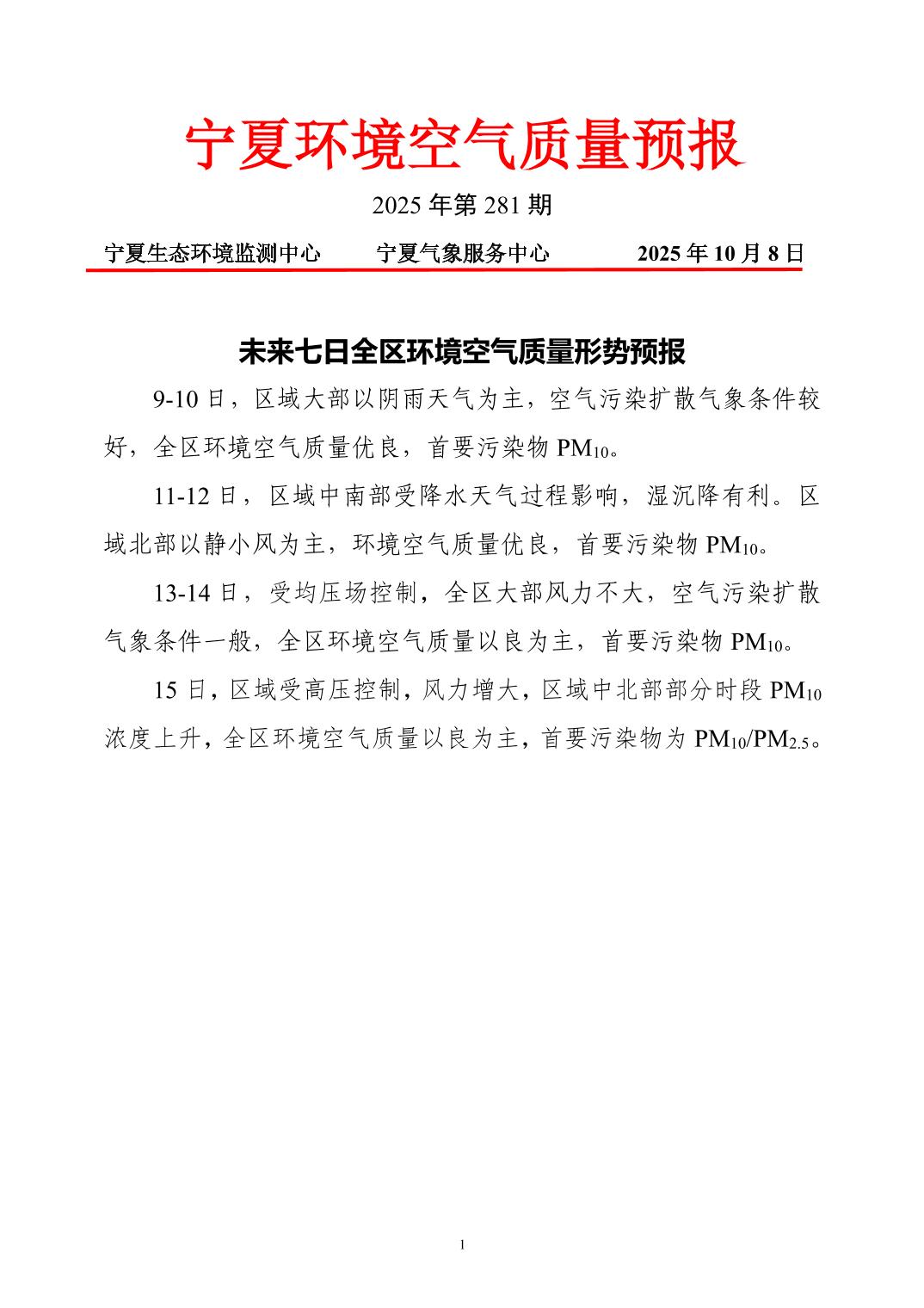 2025年10月8日宁夏环境空气质量预报信息