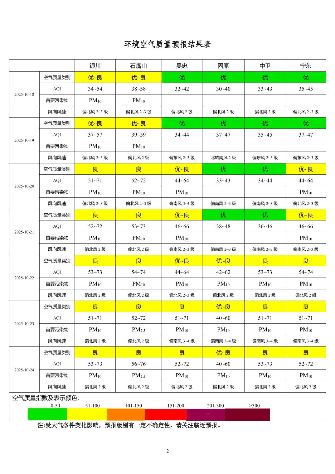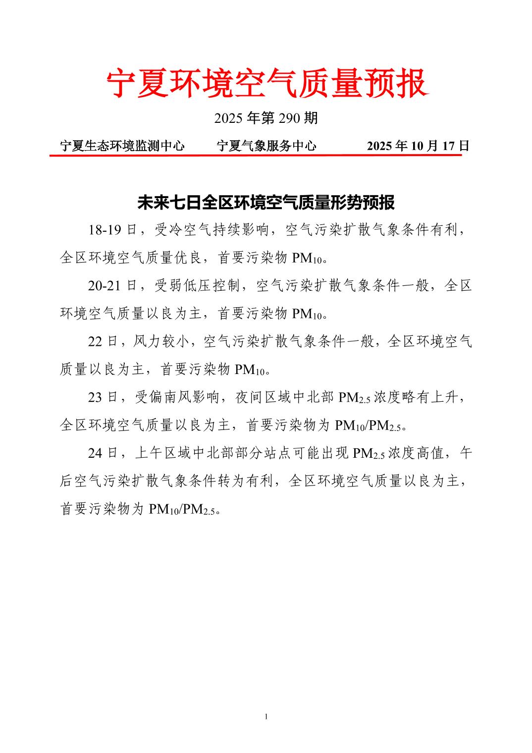 2025年10月17日宁夏环境空气质量预报信息