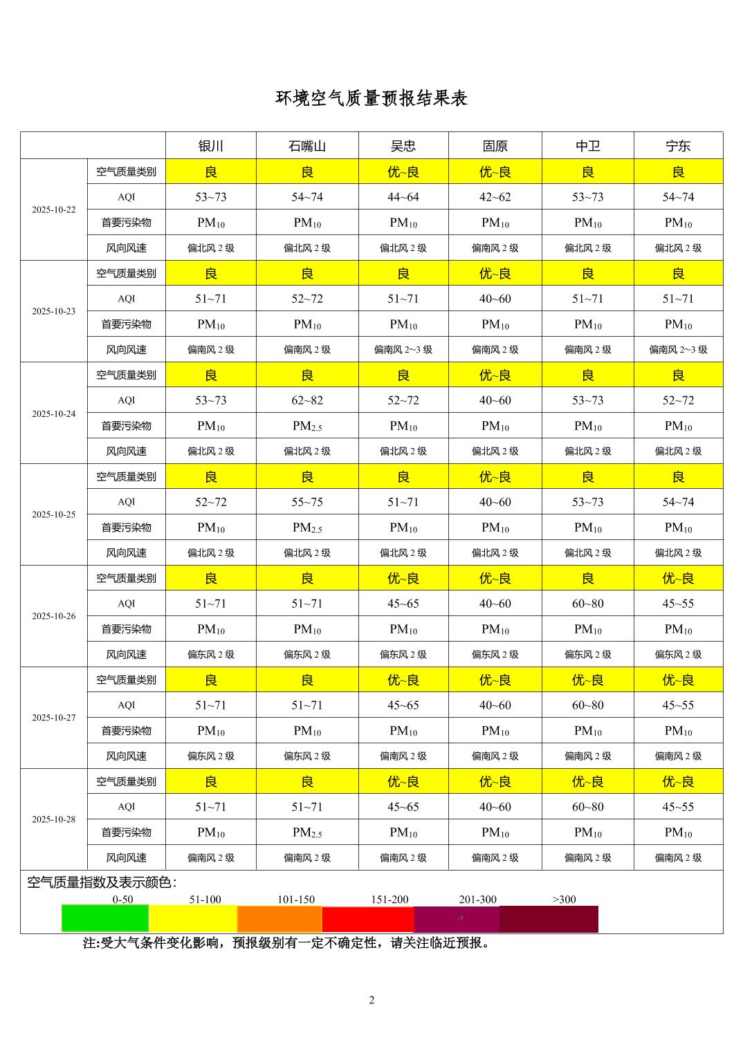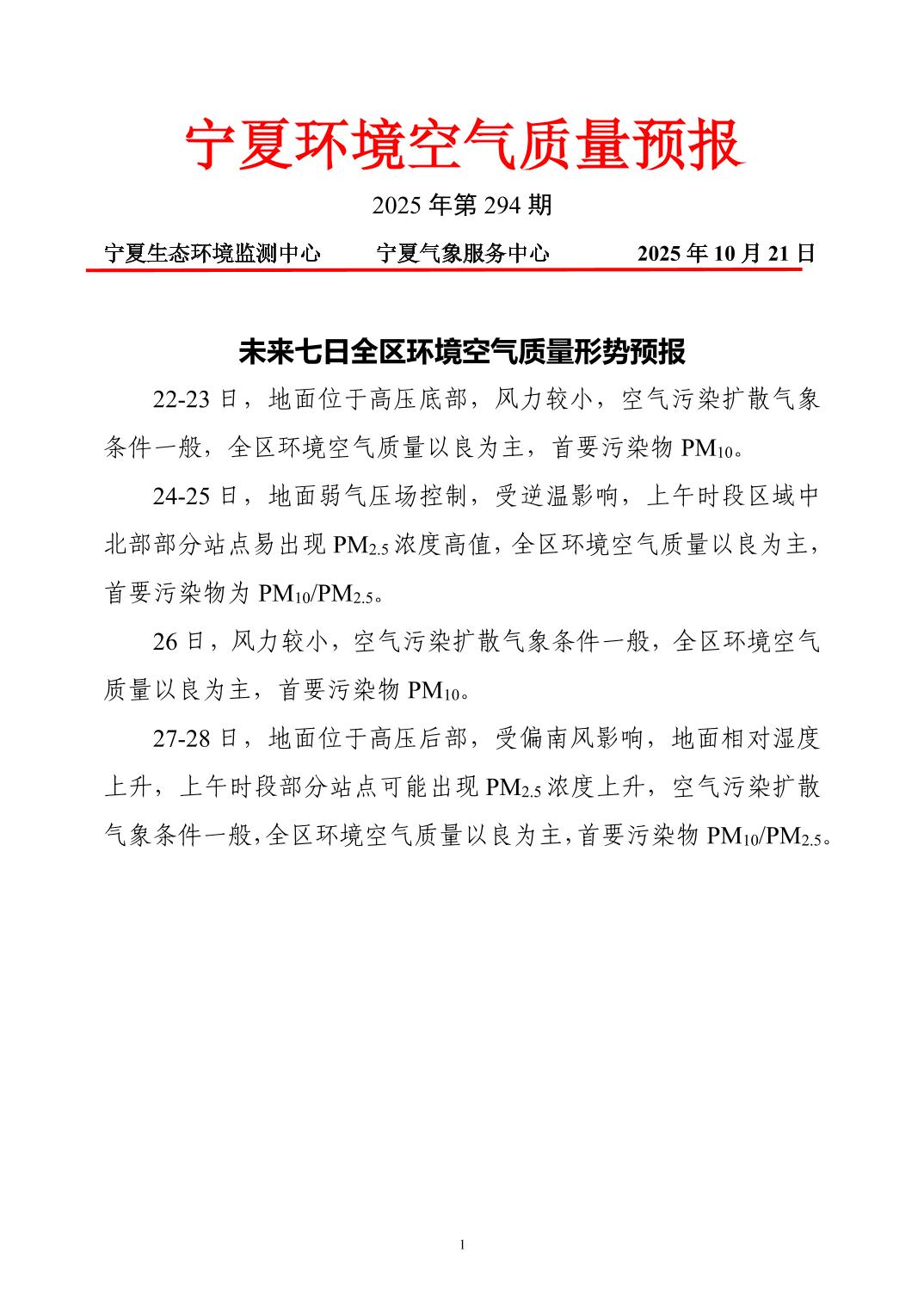 2025年10月21日宁夏环境空气质量预报信息