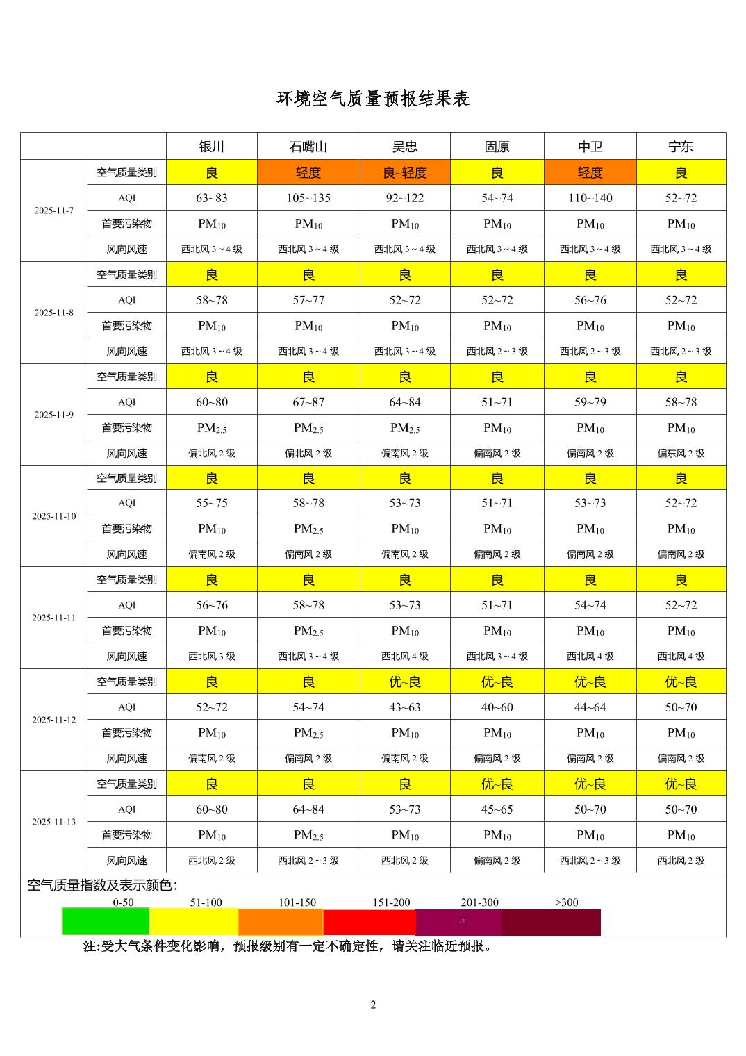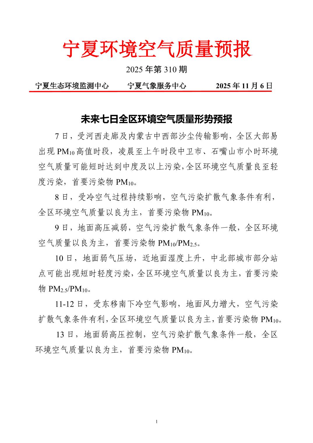 2025年11月6日宁夏环境空气质量预报信息