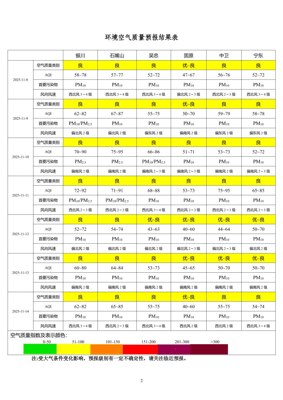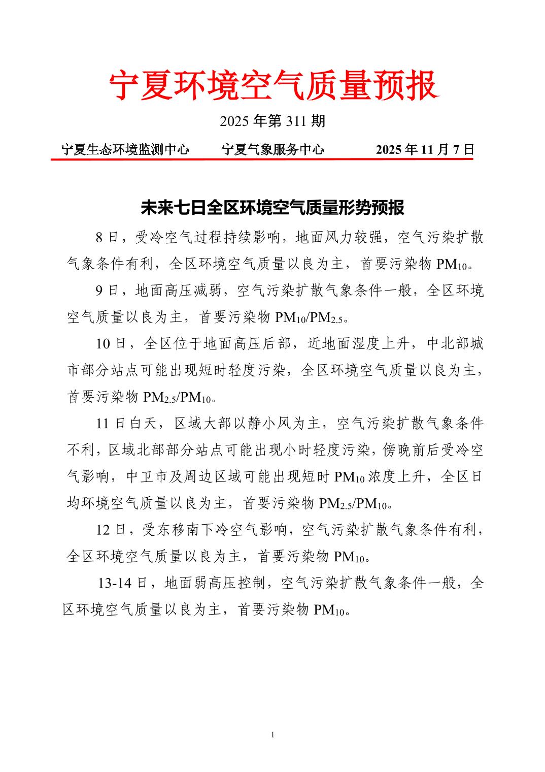 2025年11月7日宁夏环境空气质量预报信息